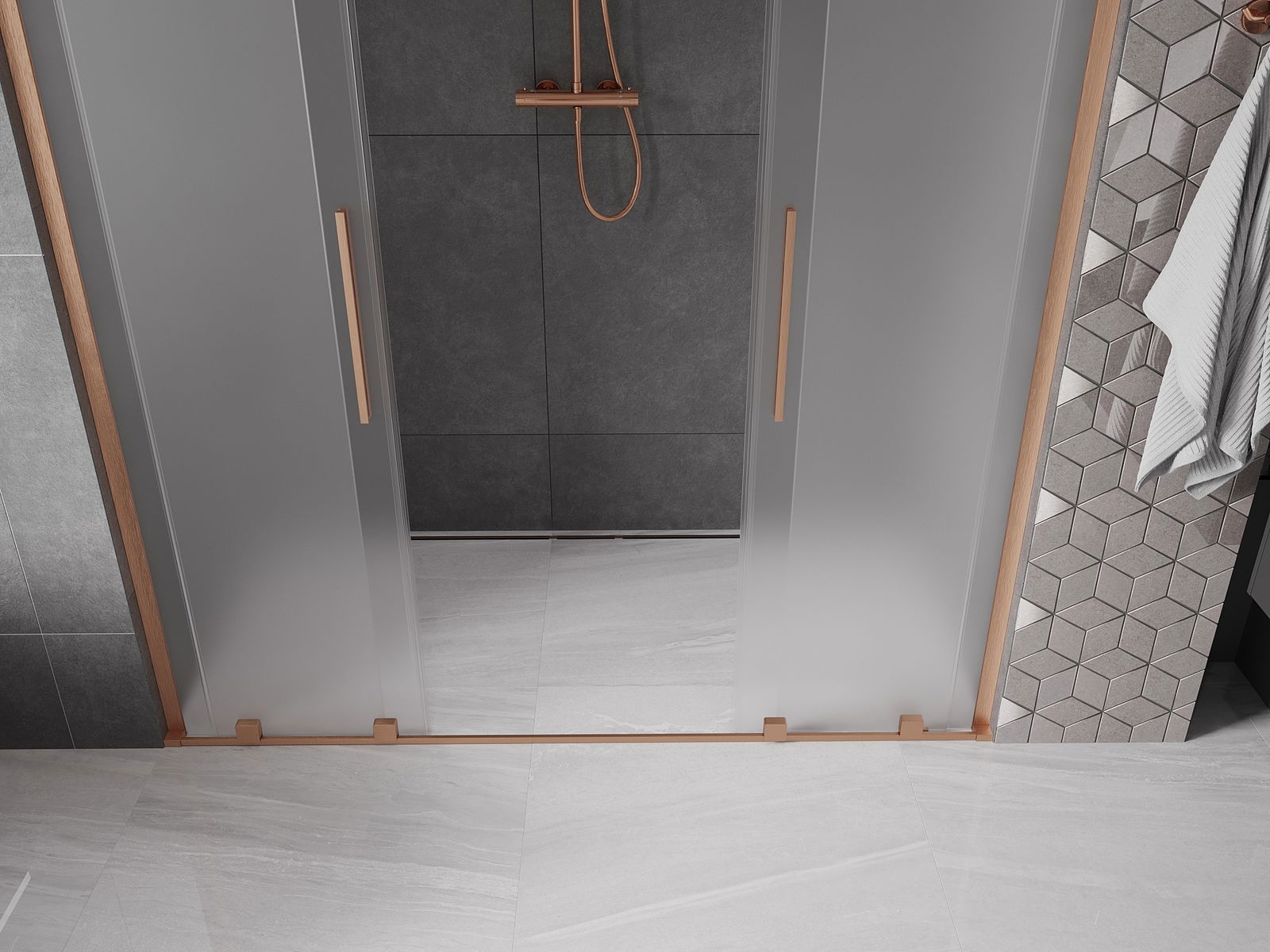 Mexen Velar L Duo porte de douche coulissante 170 cm, dépoli, cuivre brossé - 871-170-003-32-65