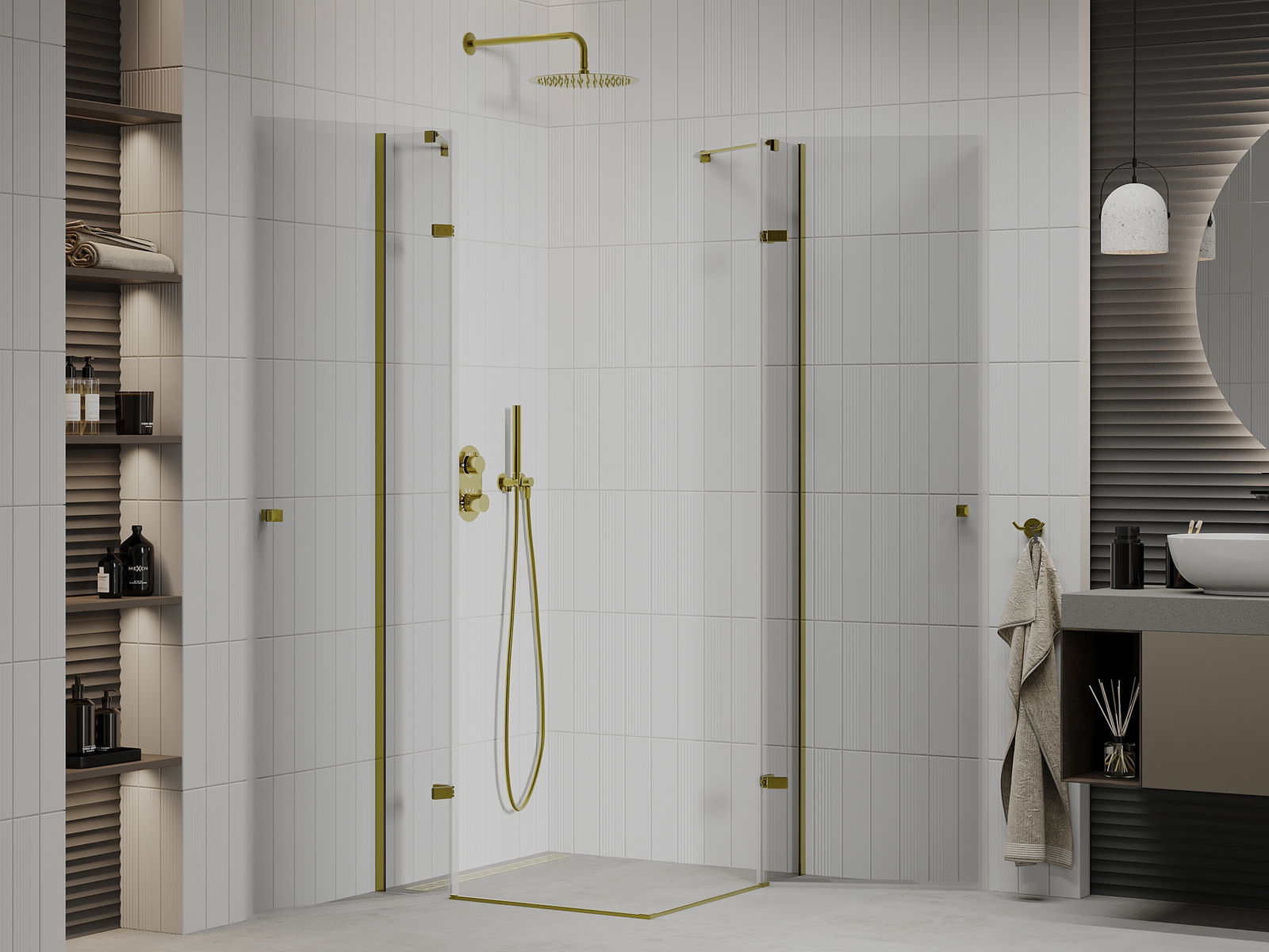 Mexen Roma Duo cabine de douche pivotante 90 x 90 cm, transparent, dorée - 854-090-090-50-00-02