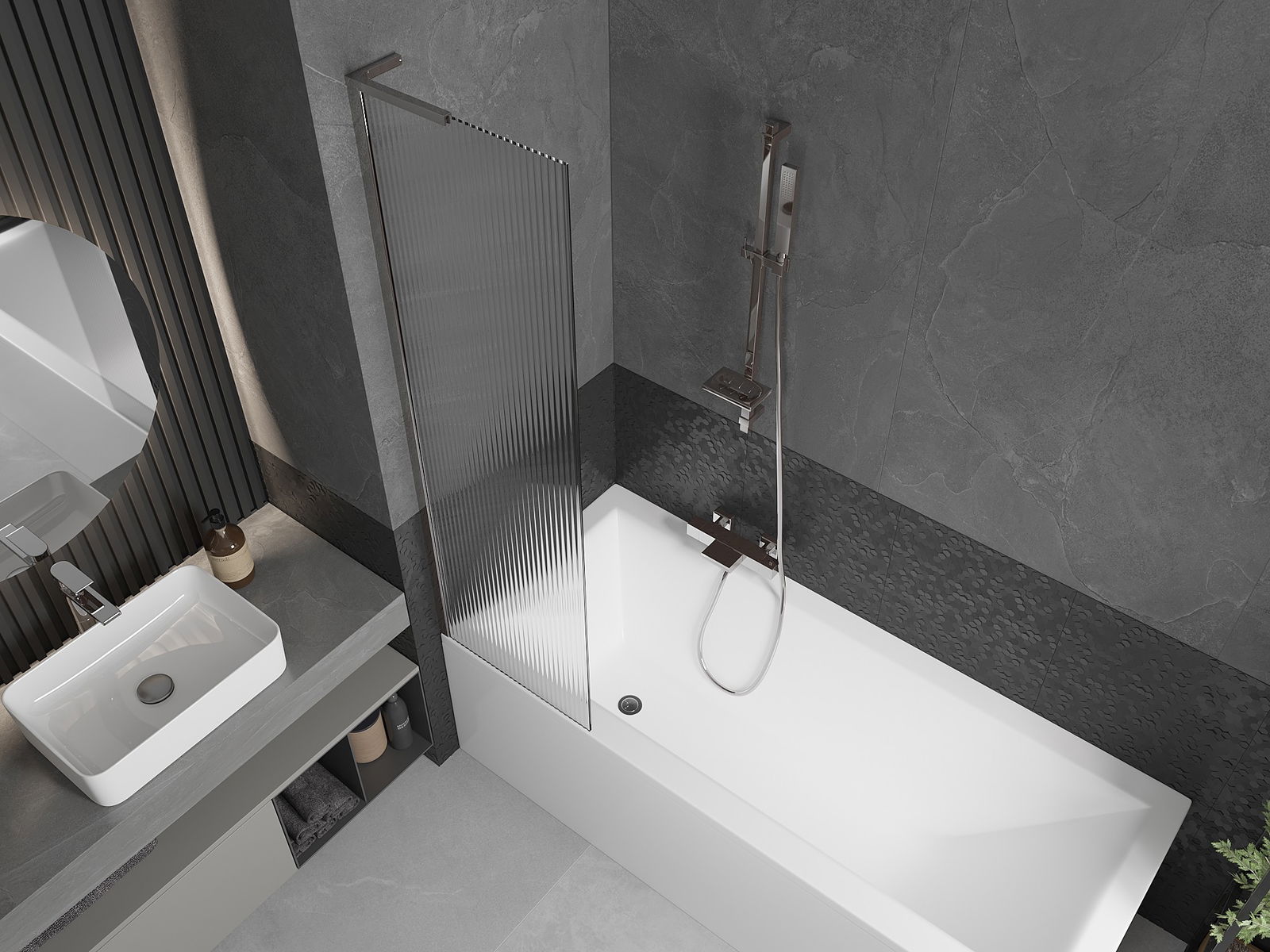 Mexen Next L paroi de baignoire à 1 vantail 50 x 150 cm, rayures, chrome - 895-050-000-03-09-01
