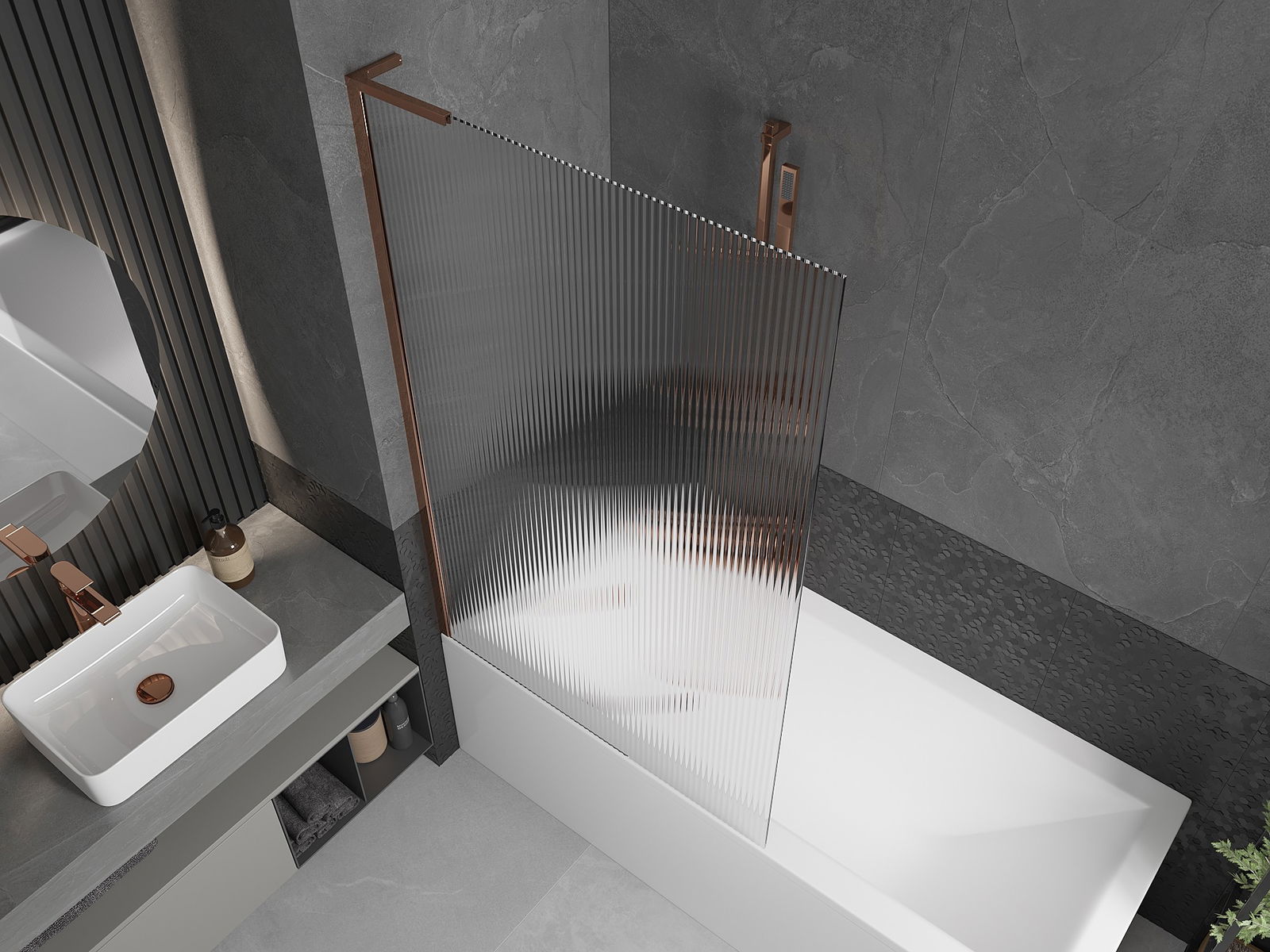 Mexen Next L paroi de baignoire à 1 panneau 100 x 150 cm, à rayures, or rose - 895-100-000-03-09-60