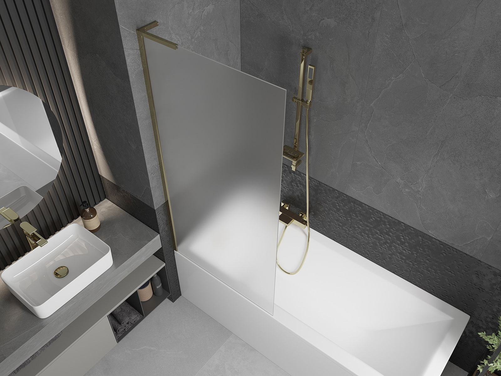 Mexen Next L paroi de baignoire 1 volet 80 x 150 cm, givré, doré - 895-080-000-03-30-50