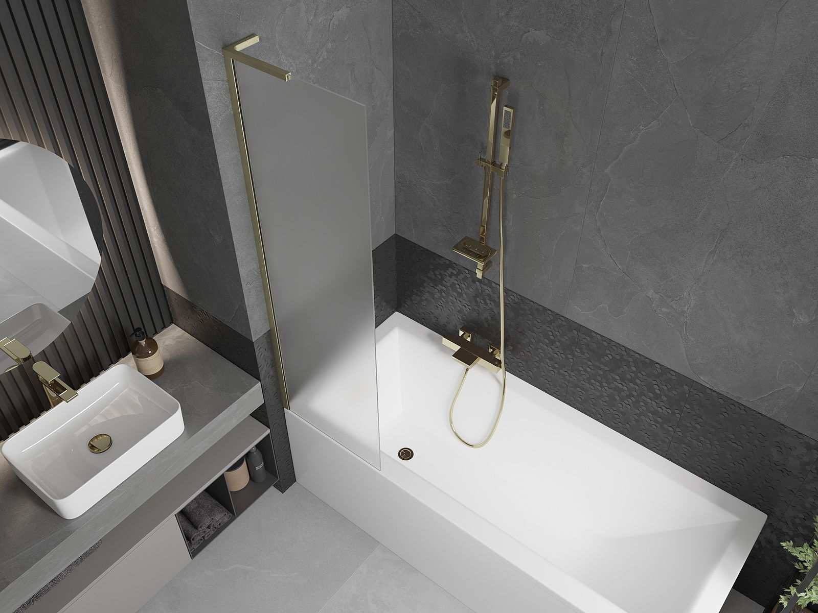 Mexen Next L paroi de baignoire à 1 volet 50 x 150 cm, givre, or brossé - 895-050-000-03-30-55