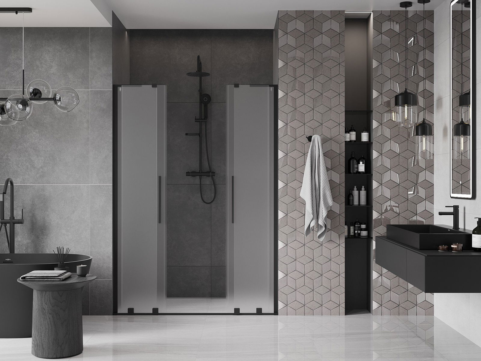 Mexen Velar L Duo porte de douche coulissantes 140 cm, givré, noir - 871-140-003-32-70