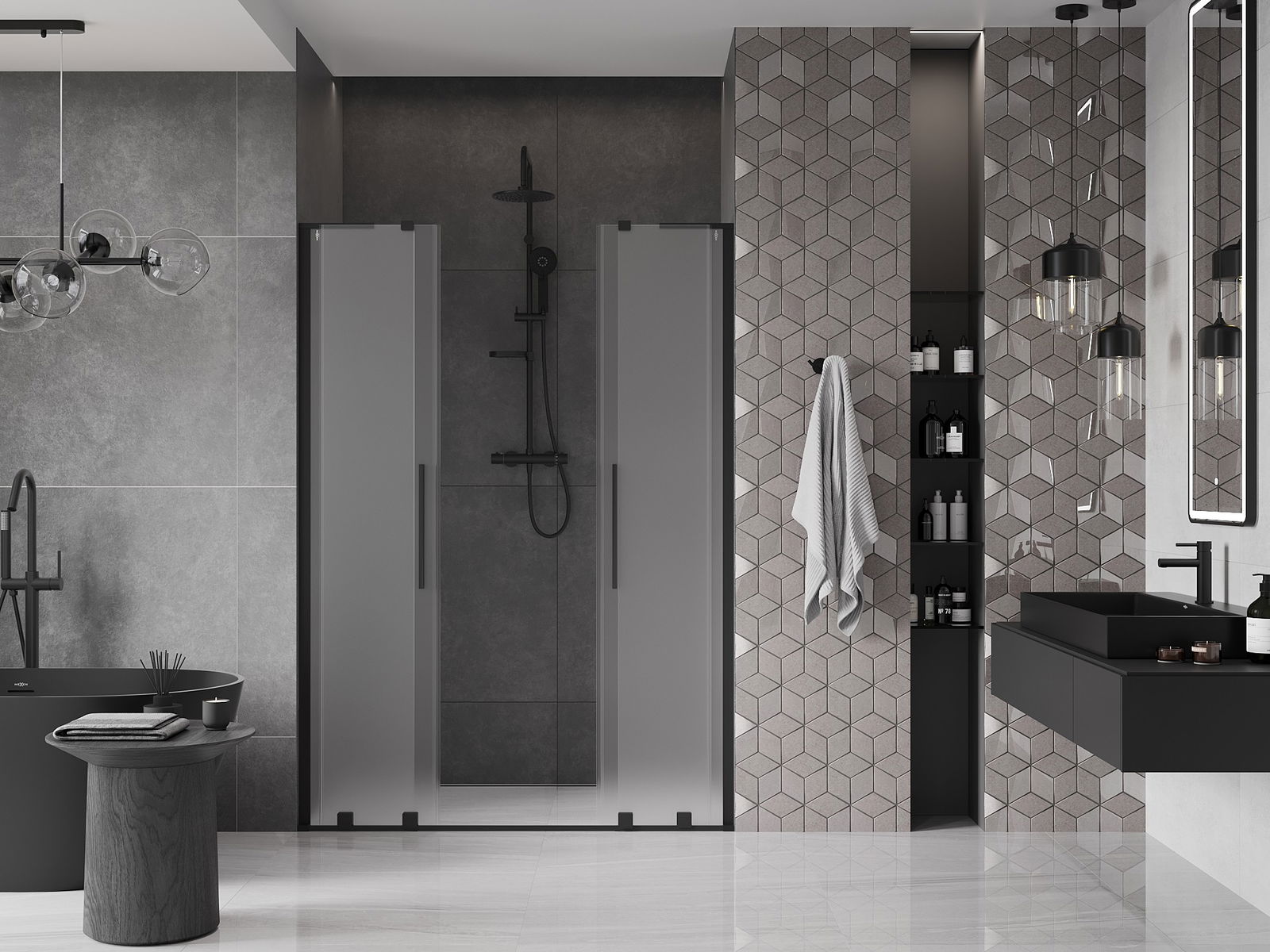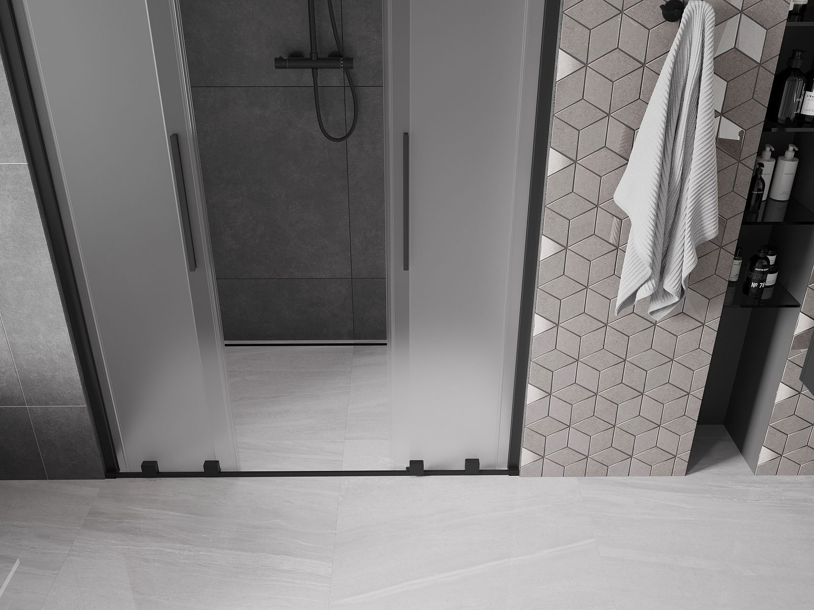 Mexen Velar L Duo porte de douche coulissantes 150 cm, dépoli, noir - 871-150-003-32-70