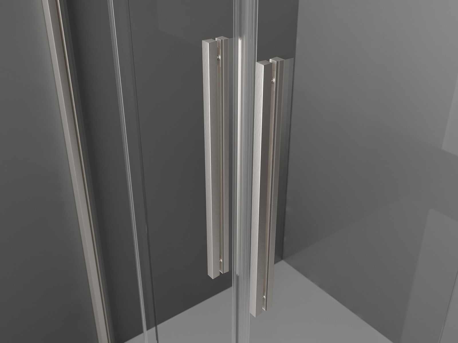 Poignée pratique et confortable en acier inoxydable. La forme moderne associée à une finition assortie à la couleur des profilés confère à l'ensemble un aspect moderne et élégant, soulignant l'esthétique de chaque salle de bain.