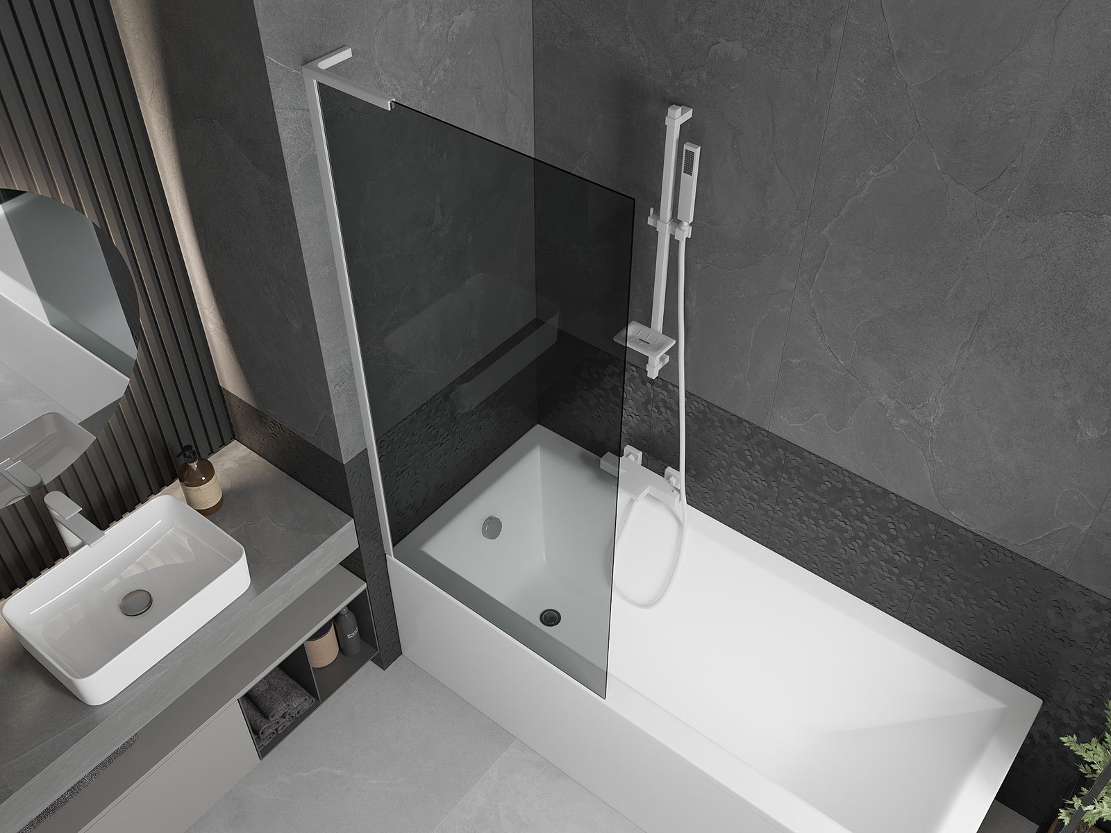 Mexen Next L paroi de baignoire 1 volet 80 x 150 cm, graphite, blanc - 895-080-000-03-40-20