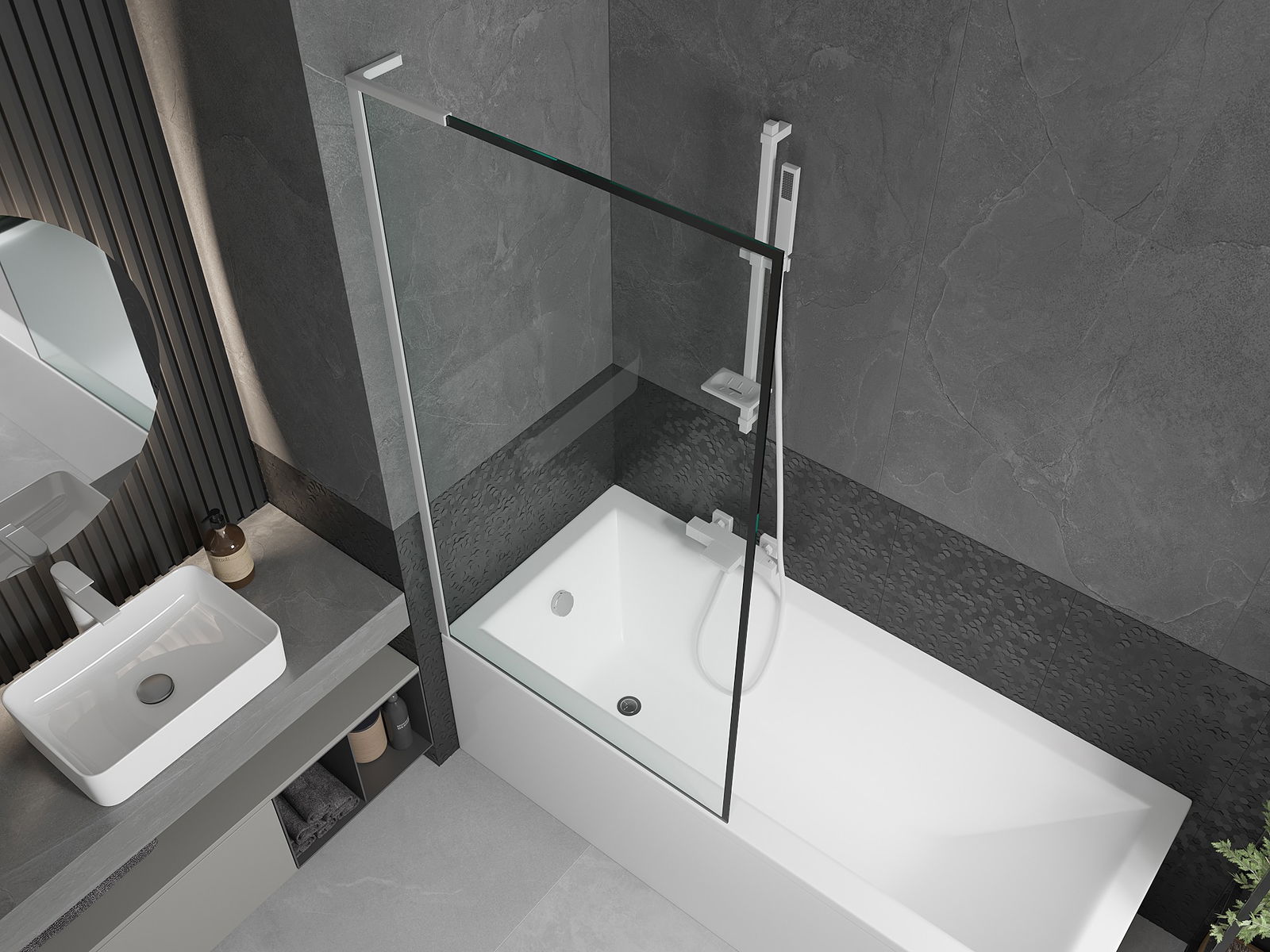 Protection efficace contre les éclaboussures d'eau pendant le bain. Le pare-baignoire est doté de joints qui s'adaptent parfaitement à la vitre et au rebord de la baignoire. Solution fonctionnelle garantissant sécurité et nettoyage facile.