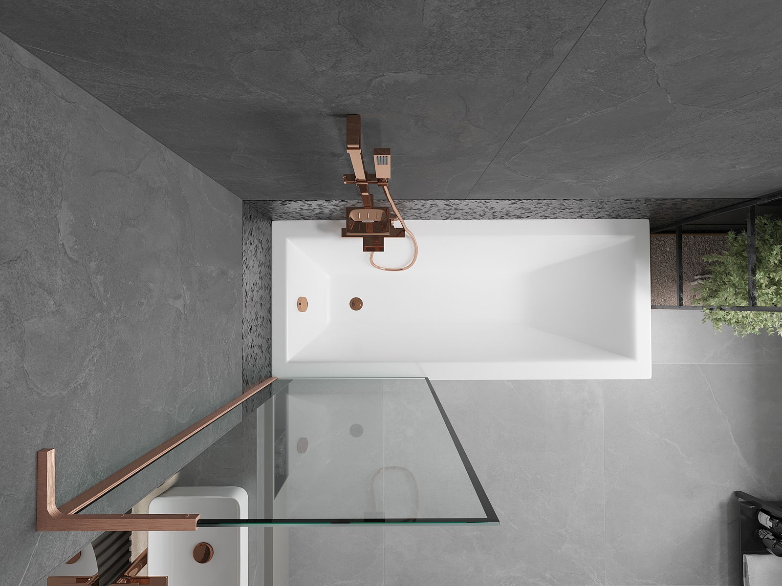Mexen Next L paroi de baignoire 1 volet 70 x 150 cm, cadre noir, cuivre brossé - 895-070-000-03-70-65
