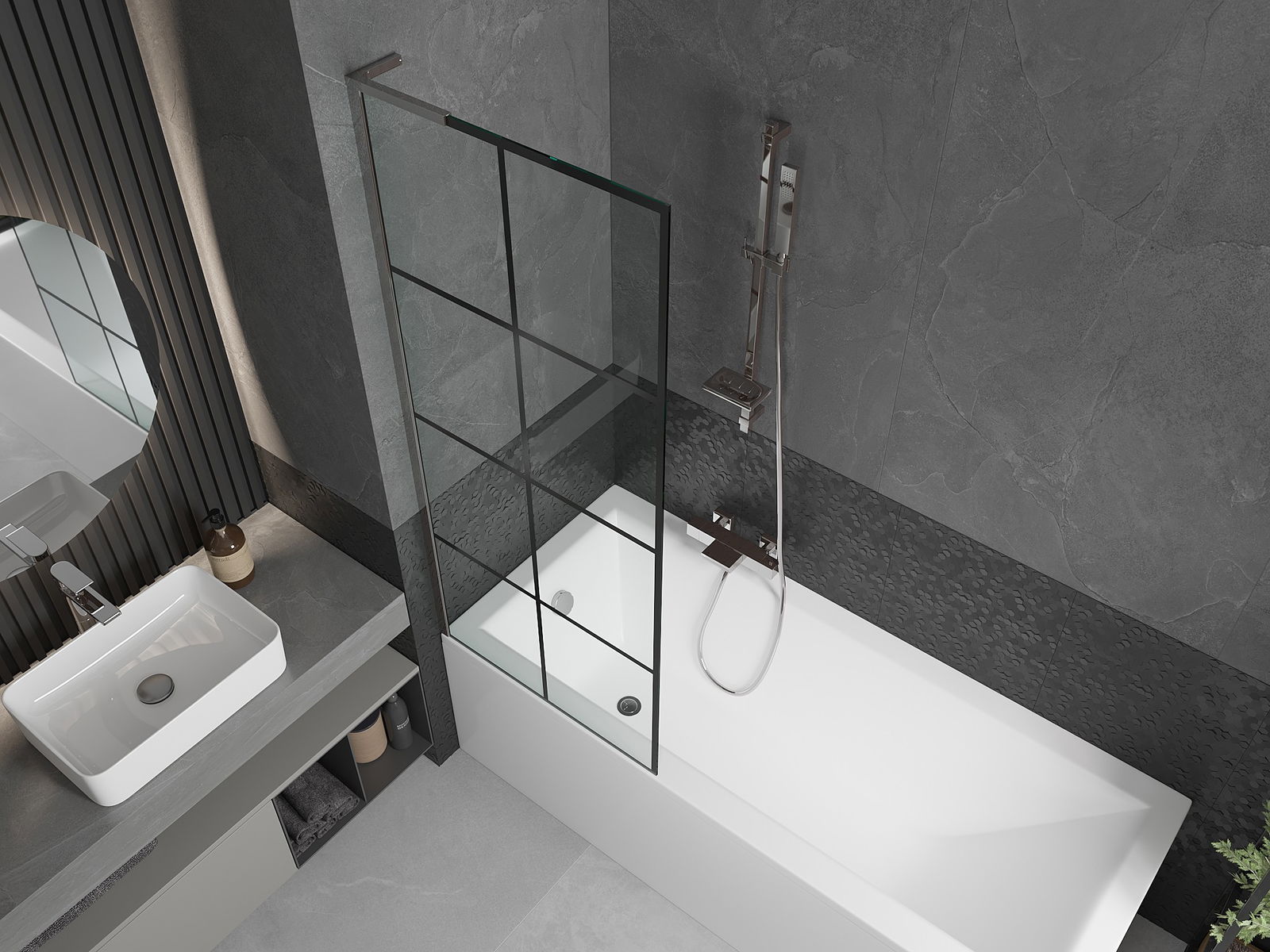 Mexen Next L paroi de baignoire 1 battant 70 x 150 cm, grille noire, chrome - 895-070-000-03-77-01