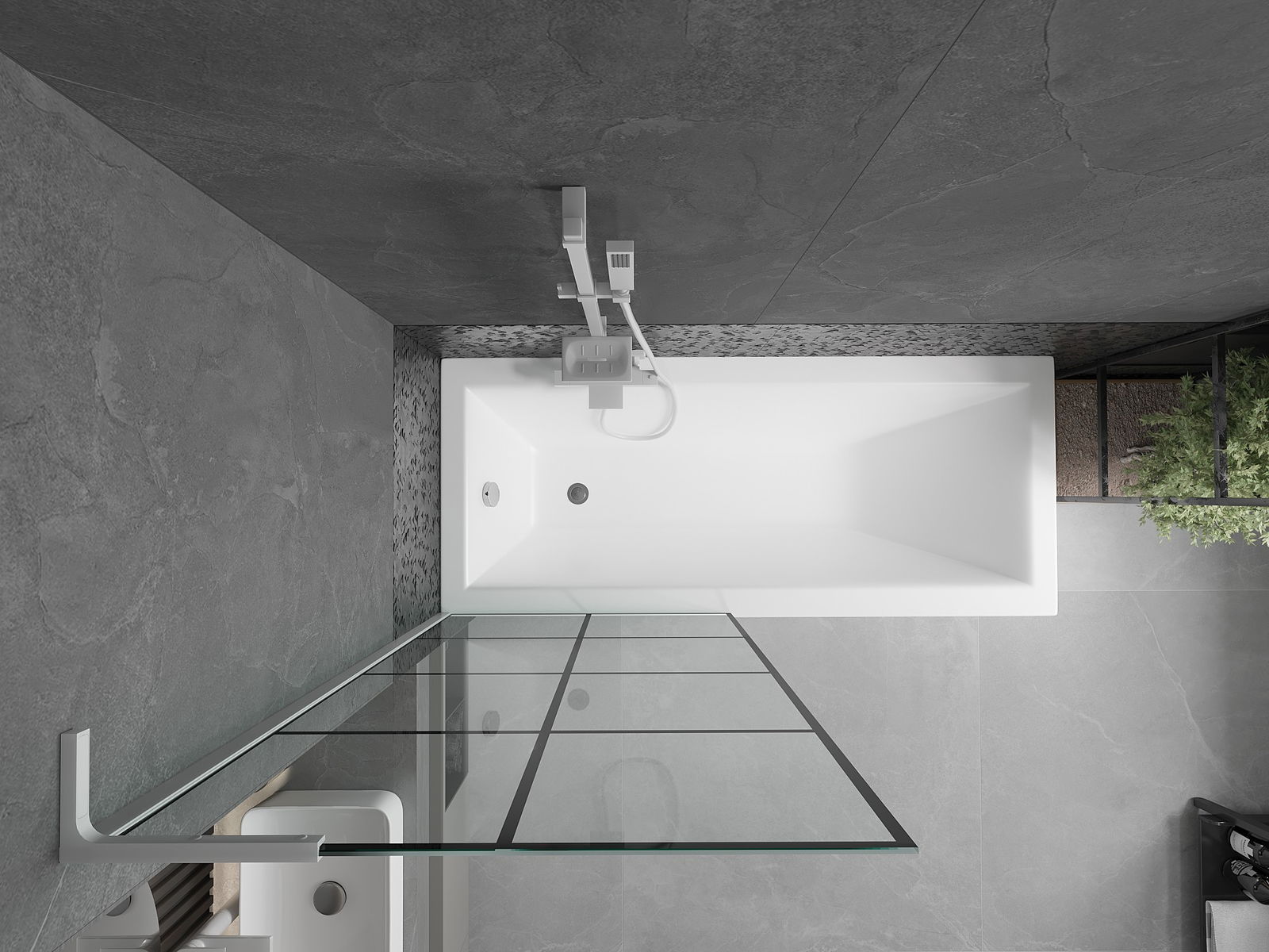 Paravent baignoire Mexen Next L 1-volet 80 x 150 cm, motif noir, blanc - 895-080-000-03-77-20