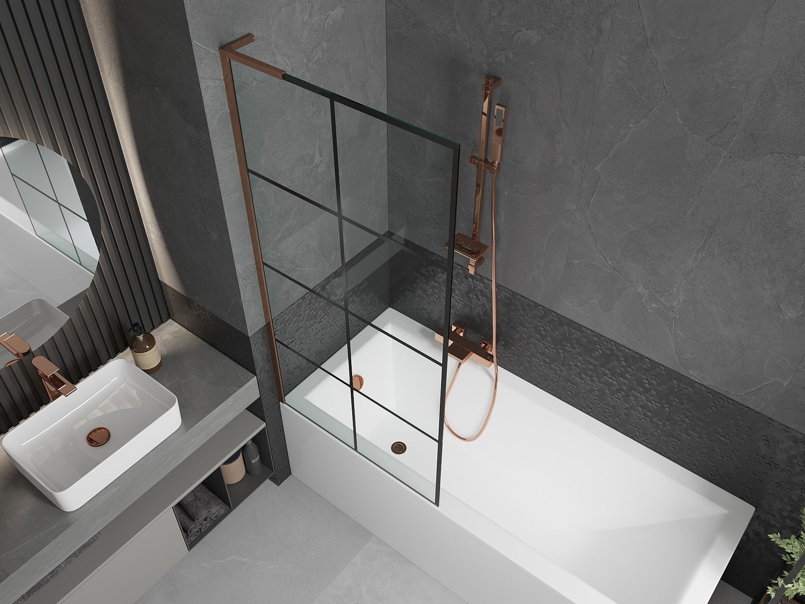 Mexen Next L pare-douche à un vantail 80 x 150 cm, grille noire, or rose - 895-080-000-03-77-60