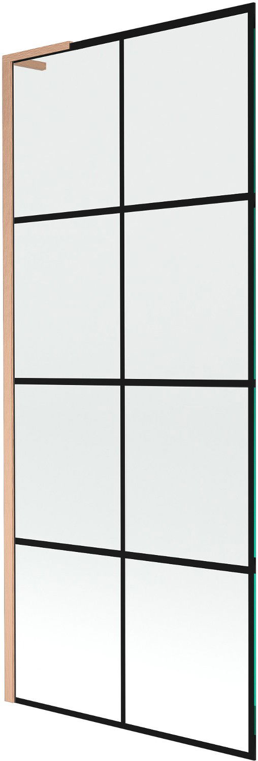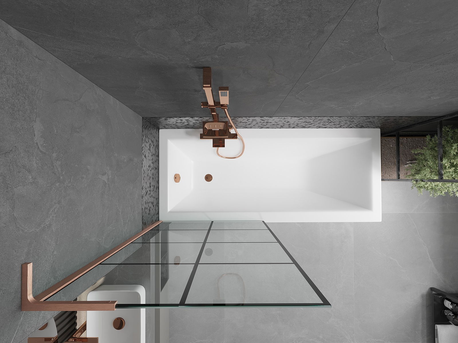 Mexen Next L paroi de baignoire à 1 vantail 80 x 150 cm, grille noire, cuivre brossé - 895-080-000-03-77-65