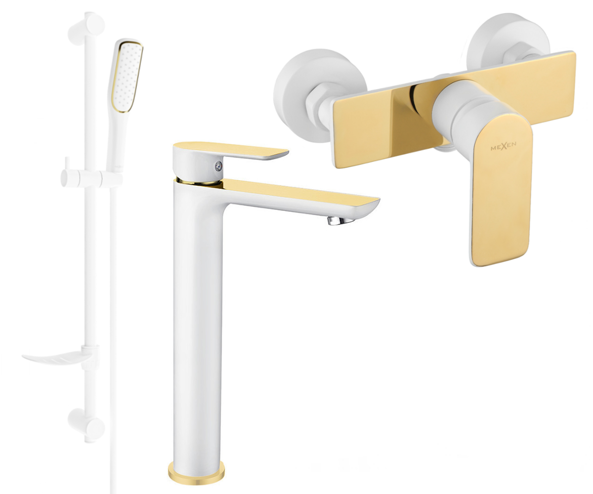 Mexen Alfa DF49 ensemble de douche, blanc/doré - 745714DF49-25