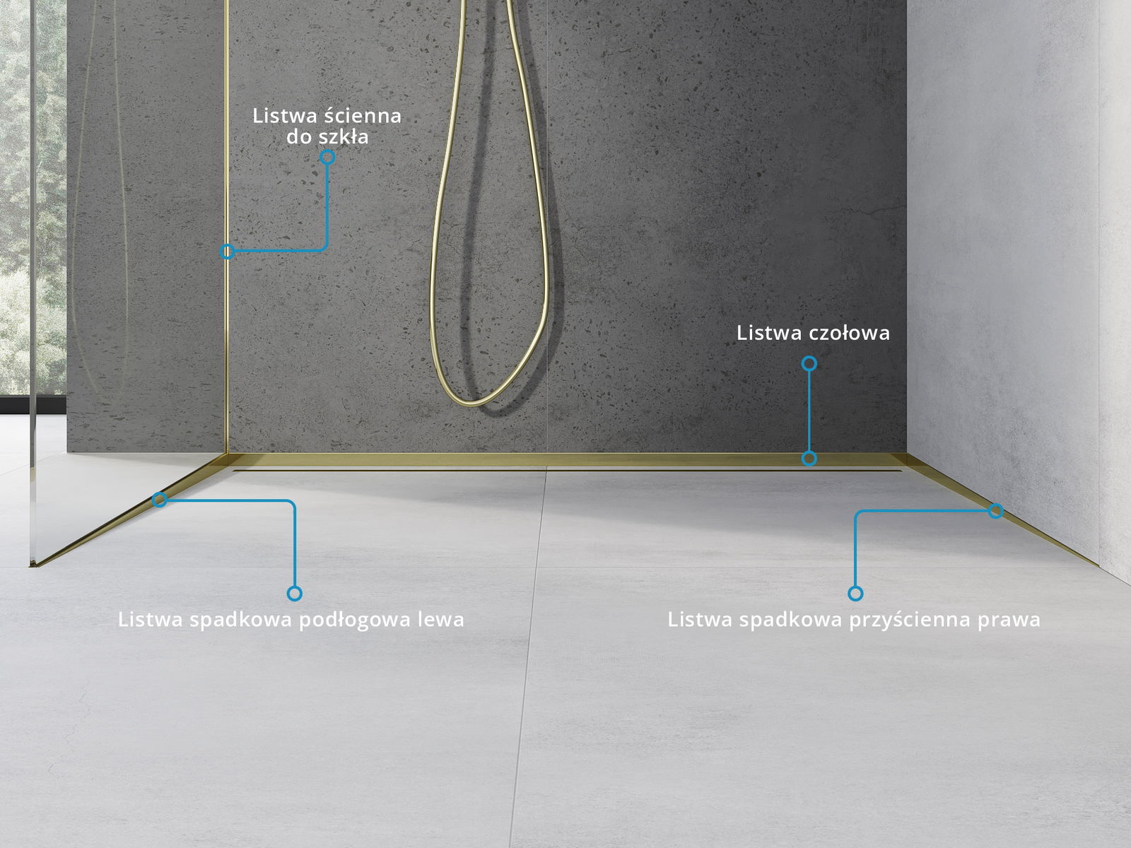 Le bord latéral de la baguette impose un écoulement unilatéral vers le drain linéaire sans avoir besoin de créer une pente
