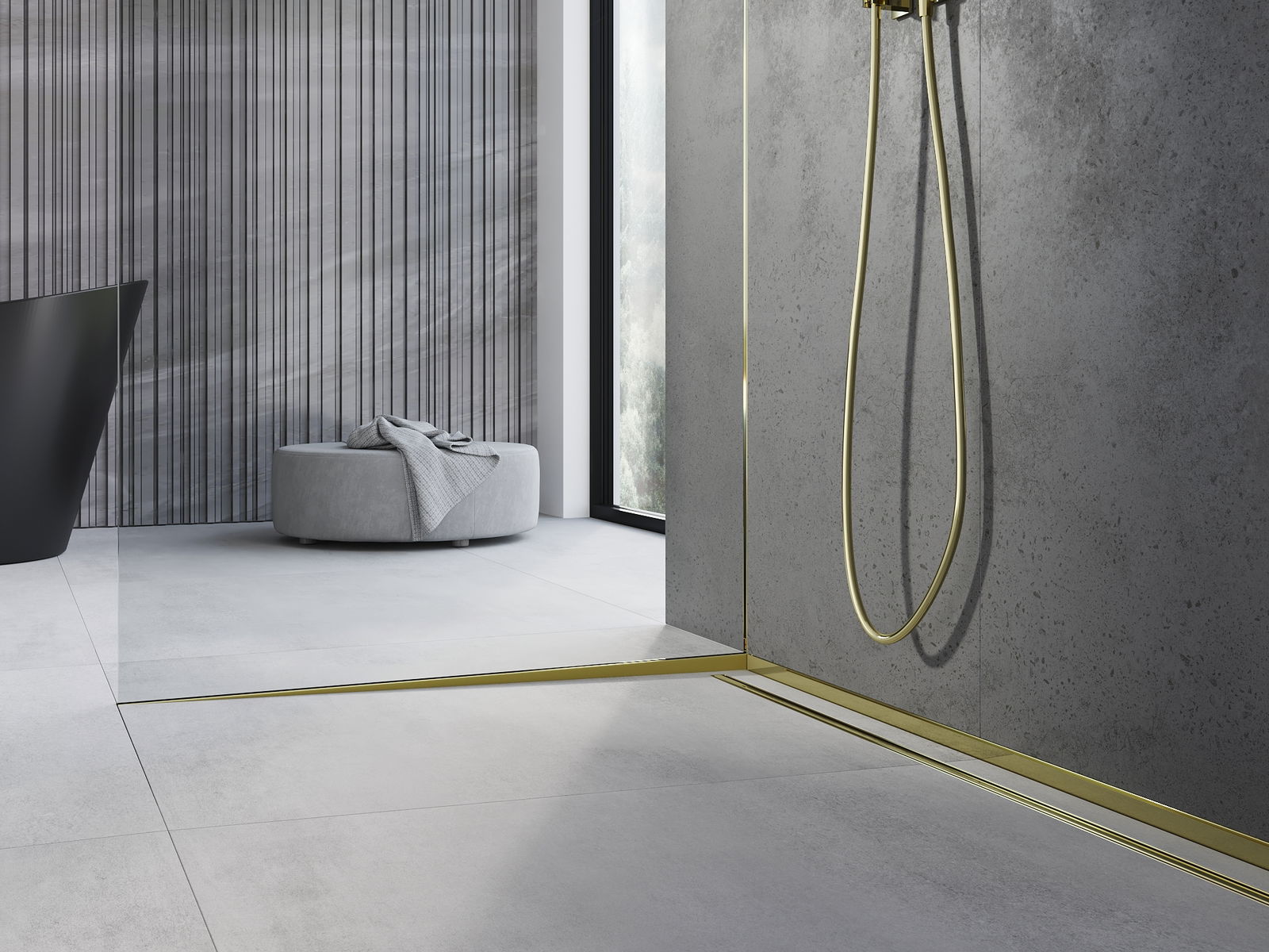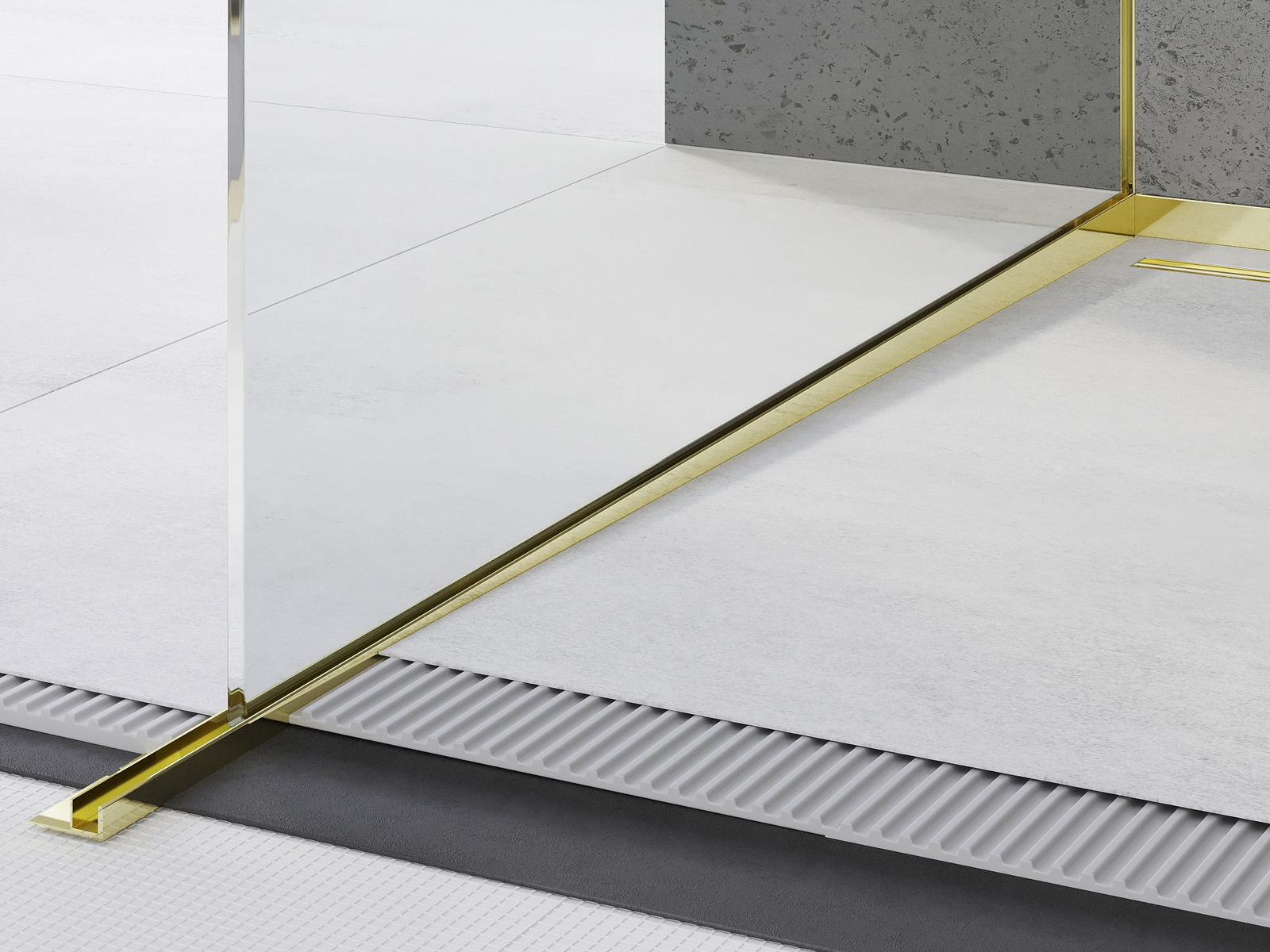 L'utilisation d'une bande inclinée élimine la nécessité de créer une enveloppe en carrelage, ce qui simplifie considérablement l'installation d'un caniveau linéaire. Cette solution permet d'éviter des travaux supplémentaires et chronophages, comme la réalisation d'une enveloppe, normalement nécessaire pour obtenir la pente adéquate du sol.