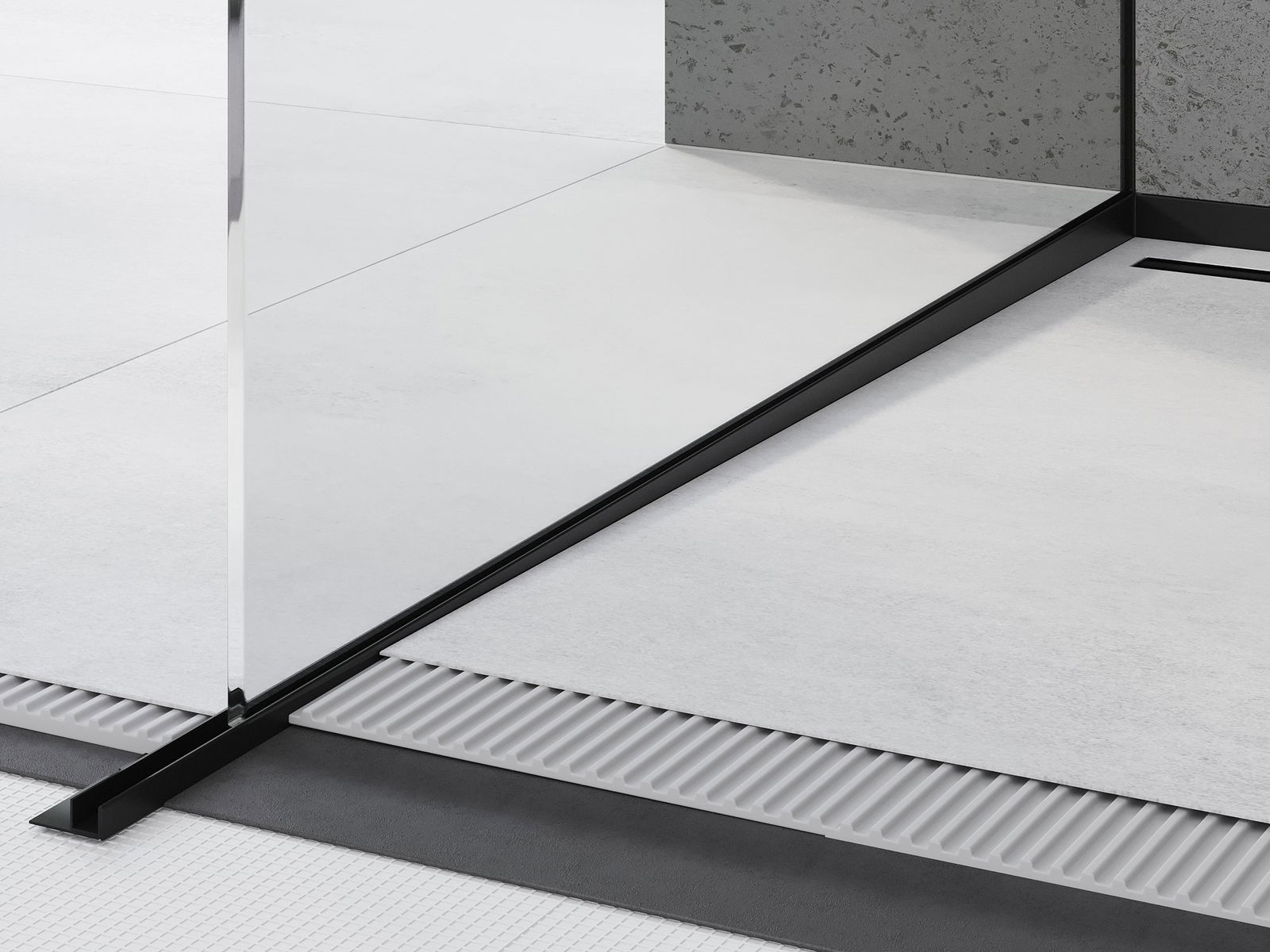 La baguette présente un emplacement pour l'installation de verre de douche, ce qui non seulement facilite le processus d'installation, mais permet également de masquer la finition à l'aide de silicone