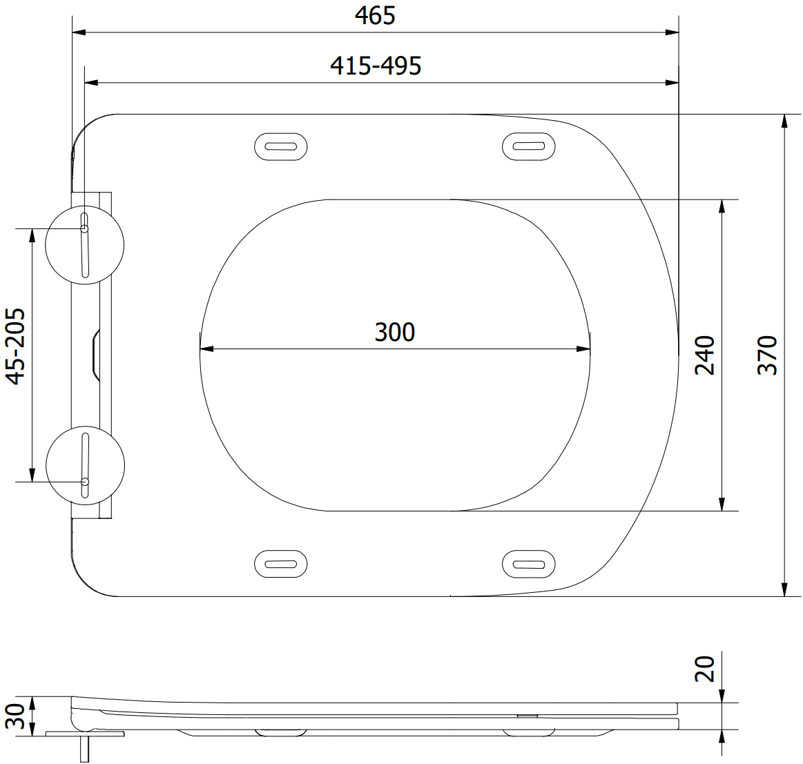 Inclus : ensemble de montage assurant une large gamme de réglages pour l'installation de l'abattant
