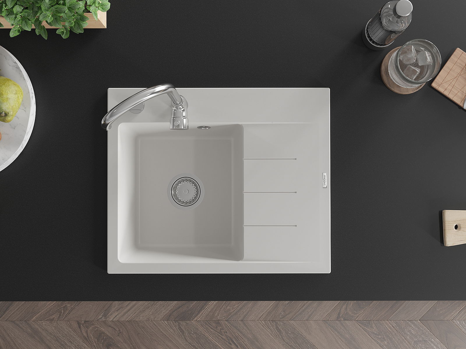 Mexen Ben évier en granit 1 bac avec égouttoir gauche 600 x 500 mm, blanc, siphon chromé - 6522605000-20