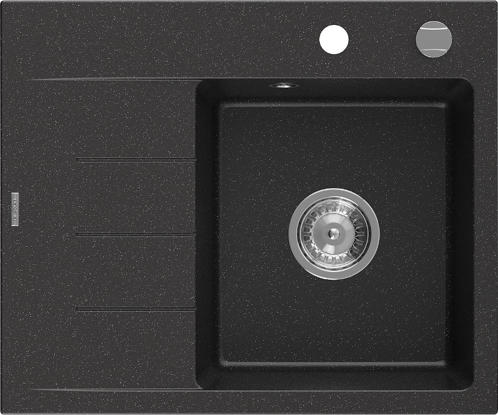 Mexen Ben Évier en granit 1 bac avec égouttoir, droit 600 x 500 mm, noir/argent métallisé, siphon chromé - 6523605000-73