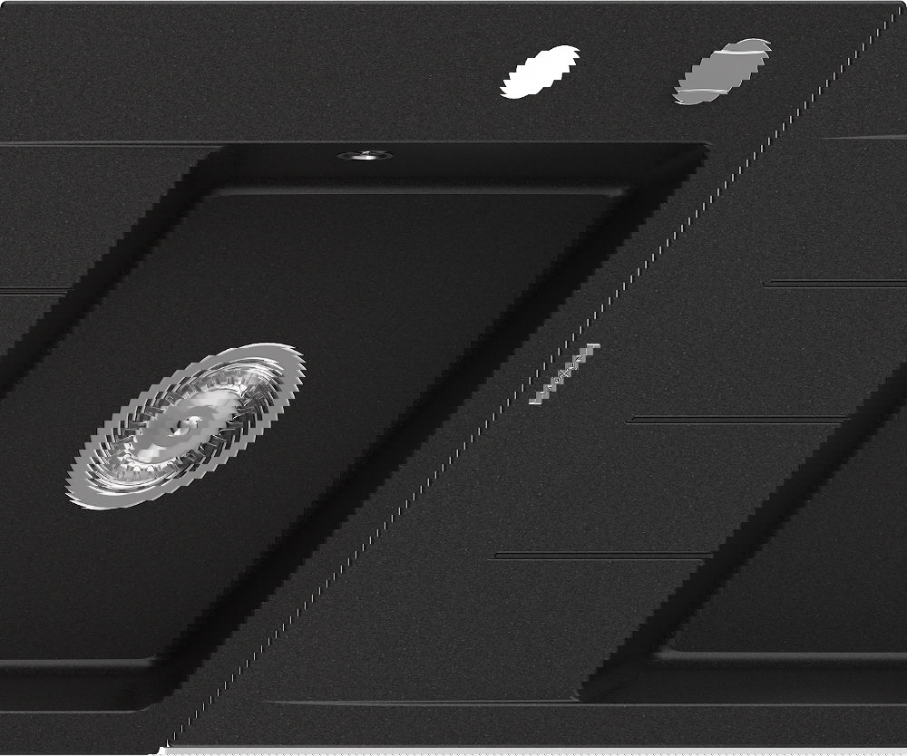 Mexen Ben évier en granit 1 bac avec égouttoir, à droite 600 x 500 mm, noir, siphon chromé - 6523605000-77