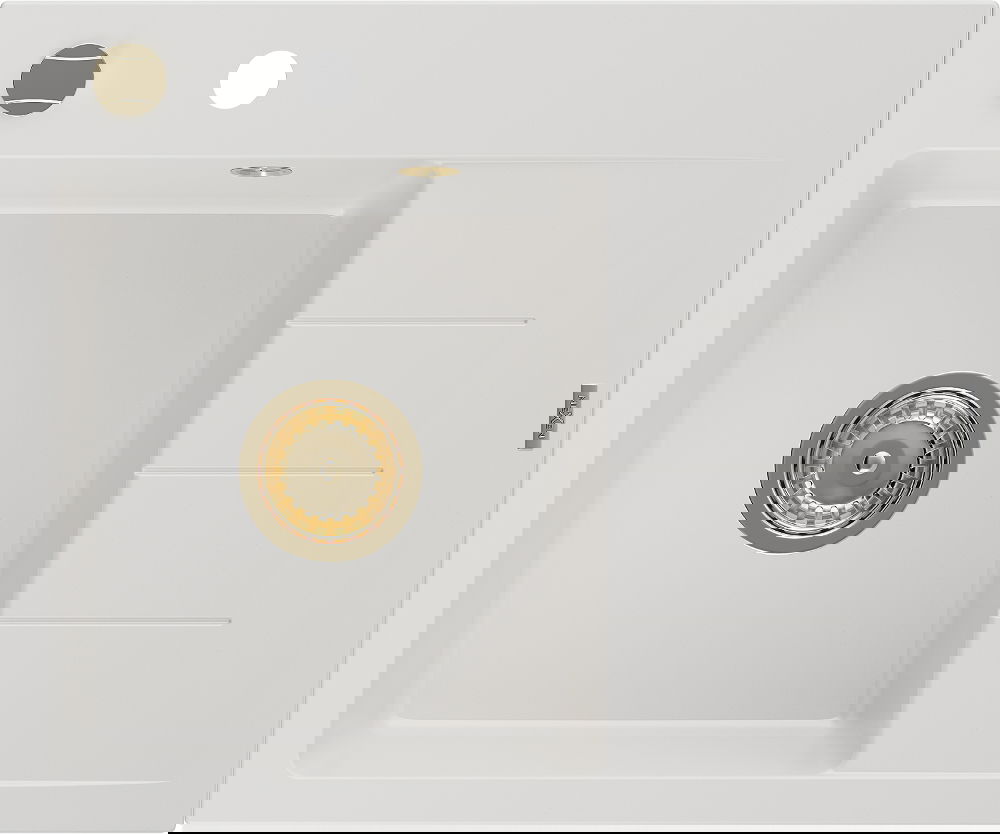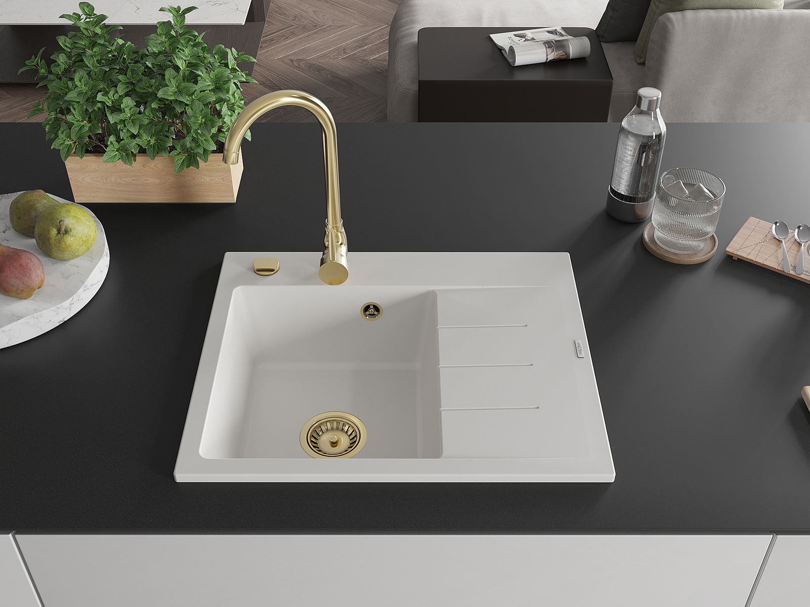 Mexen Ben évier en granit 1 bac avec égouttoir, gauche 600 x 500 mm, blanc, siphon doré - 6522605000-20-G