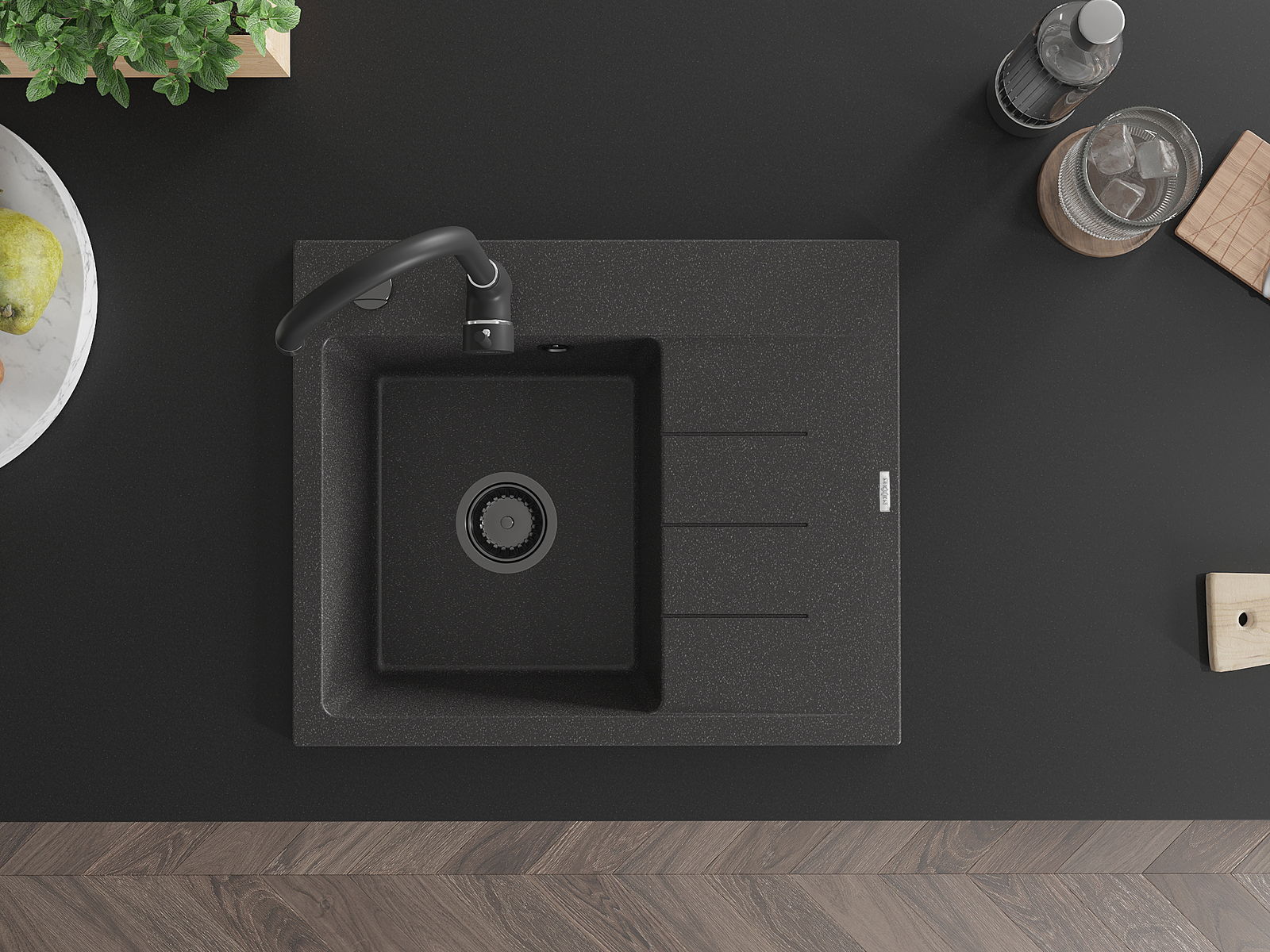 La surface de l'évier est très bien trempée et se distingue par une résistance exceptionnelle aux dommages mécaniques et aux rayures. Ce matériau durable vous permettra de profiter de son bel aspect pendant de nombreuses années.
