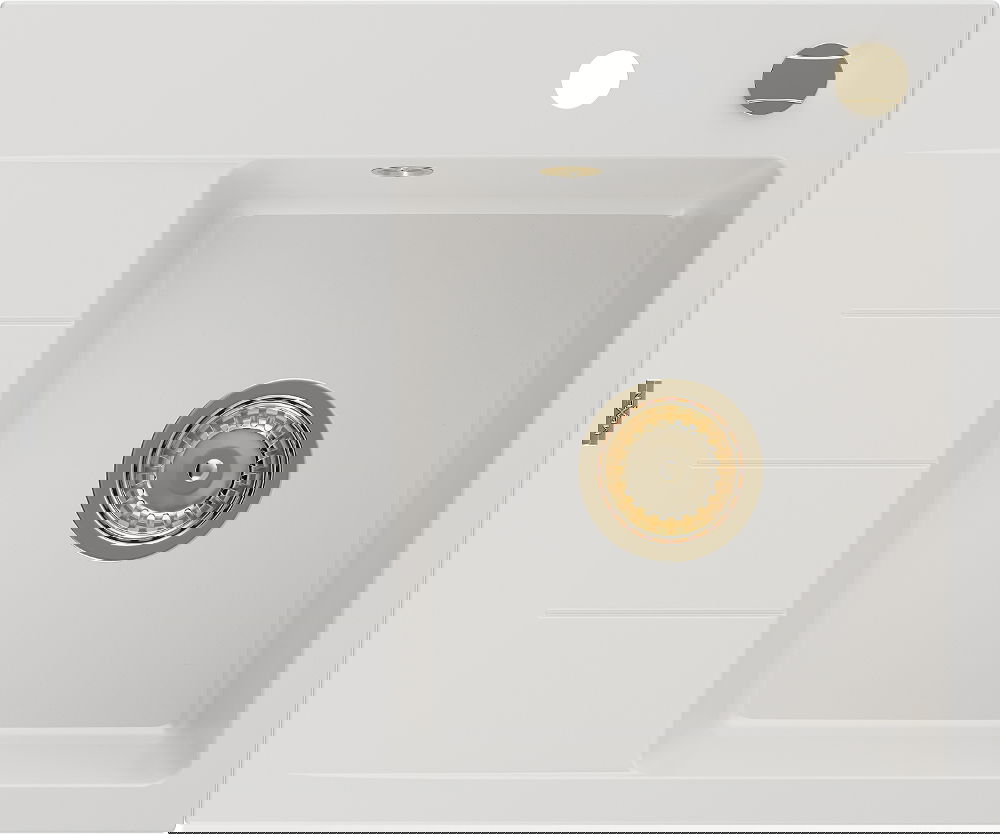 Mexen Ben Évier en granit 1 bac avec égouttoir, droit 600 x 500 mm, blanc, siphon doré - 6523605000-20-G