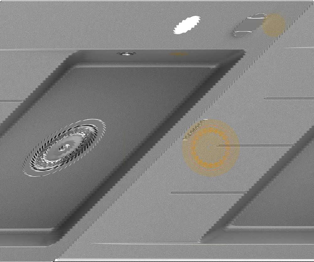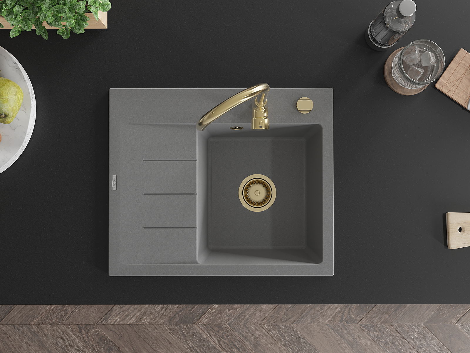 Mexen Ben évier granit 1 bac avec égouttoir, droit 600 x 500 mm, gris, siphon doré - 6523605000-71-G