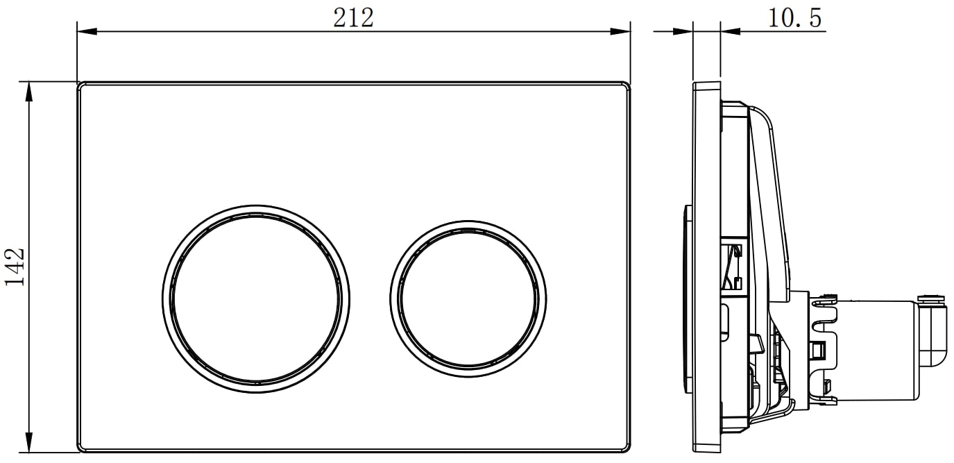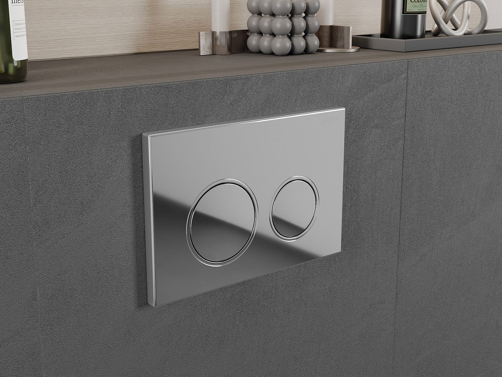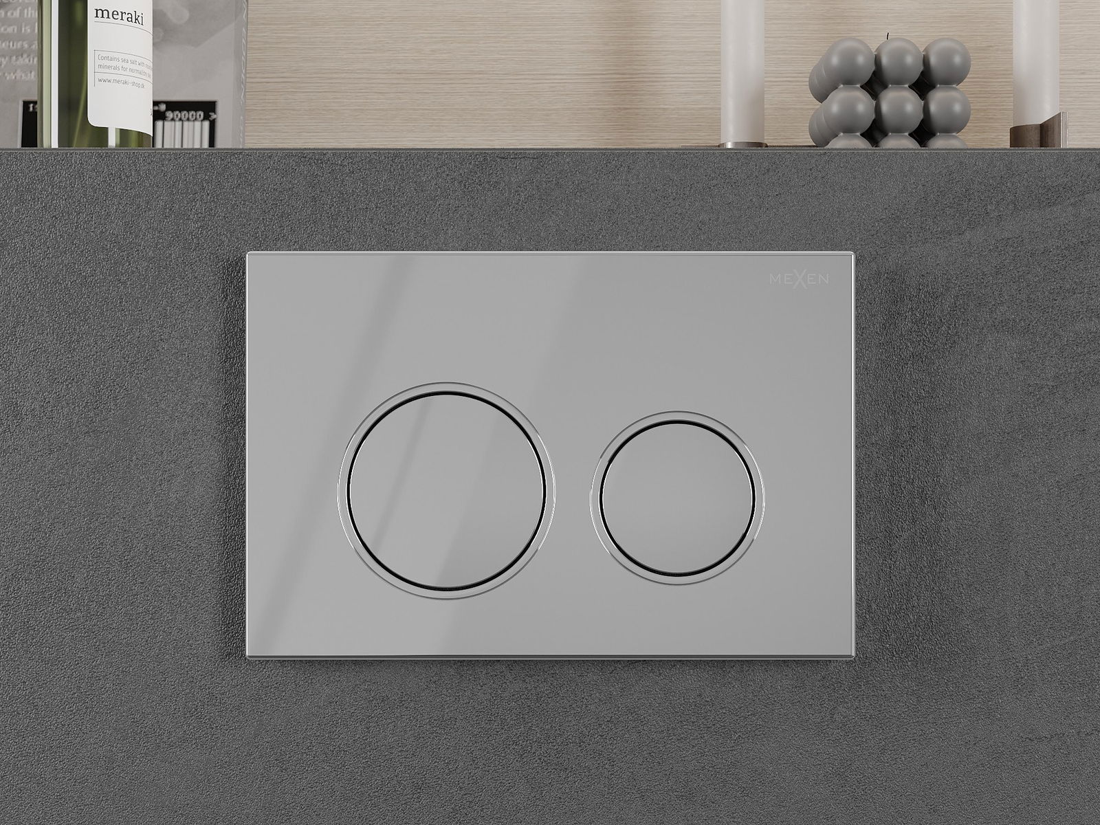 Le bouton est conçu pour les châssis Mexen de la série XS. Il peut être monté à la fois à l'avant et en haut du châssis, ce qui augmente son universalité. Cette solution facilite l'installation dans différentes conditions de montage. Ainsi, le contrôle de la chasse d'eau est pratique et intuitif.