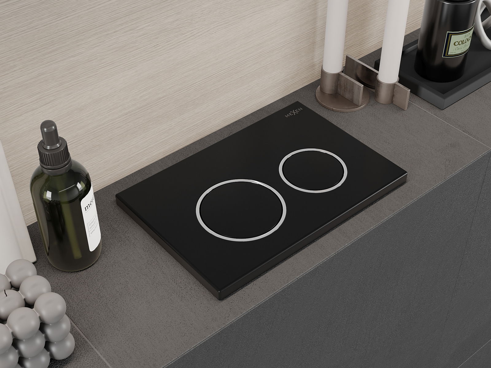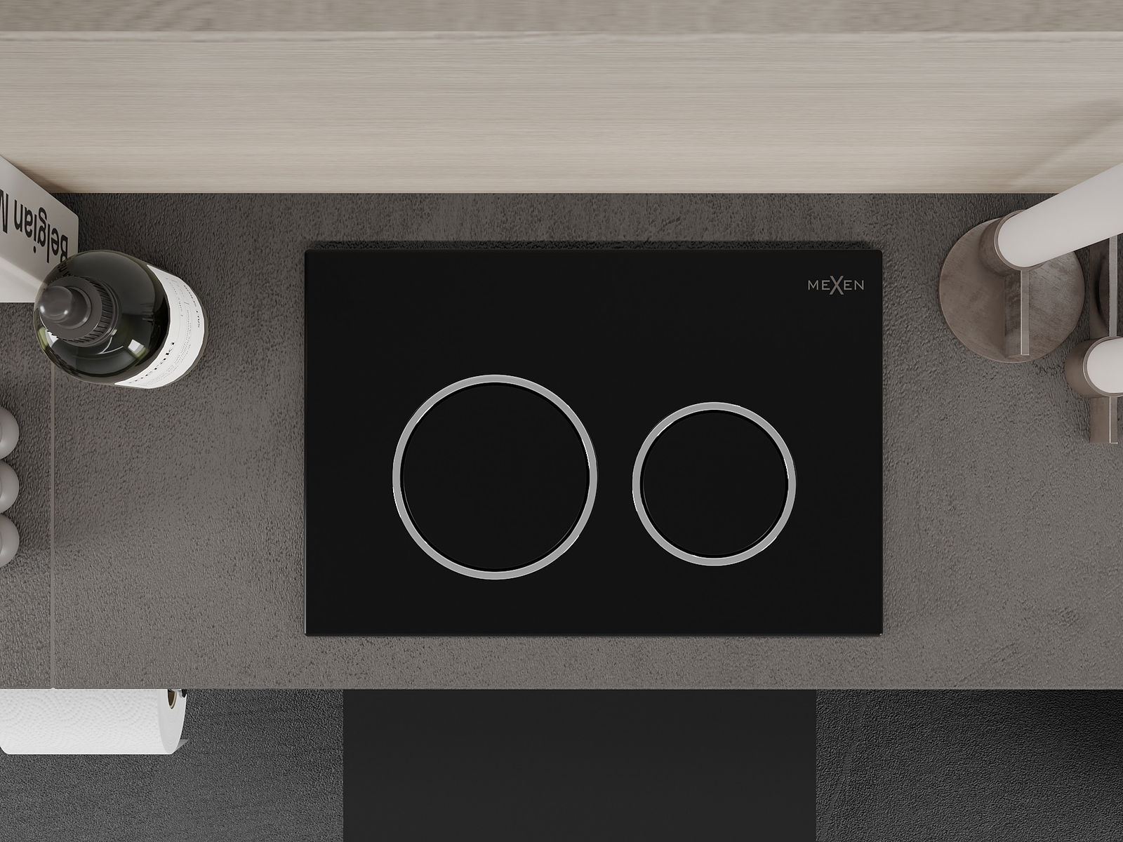 Le bouton est conçu pour les châssis Mexen de la série XS. Il peut être monté à la fois à l'avant et en haut du châssis, ce qui augmente son universalité. Cette solution facilite l'installation dans différentes conditions de montage. Ainsi, le contrôle de la chasse d'eau est pratique et intuitif.
