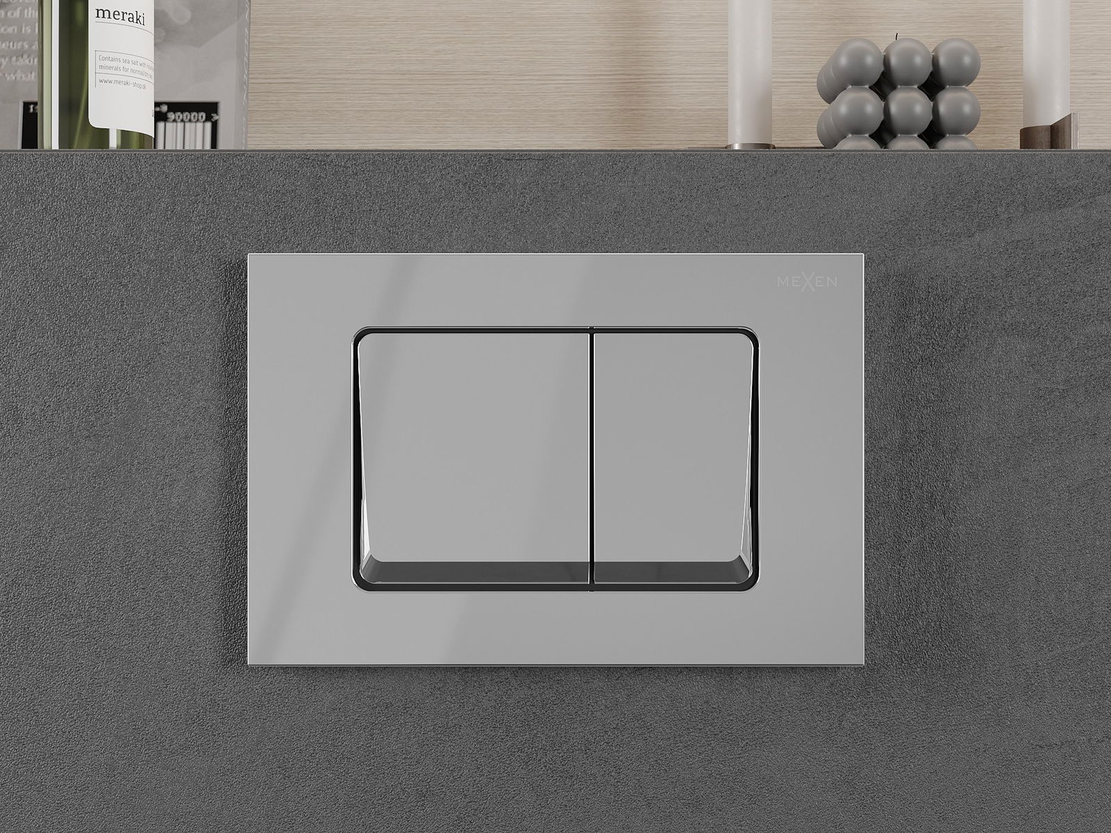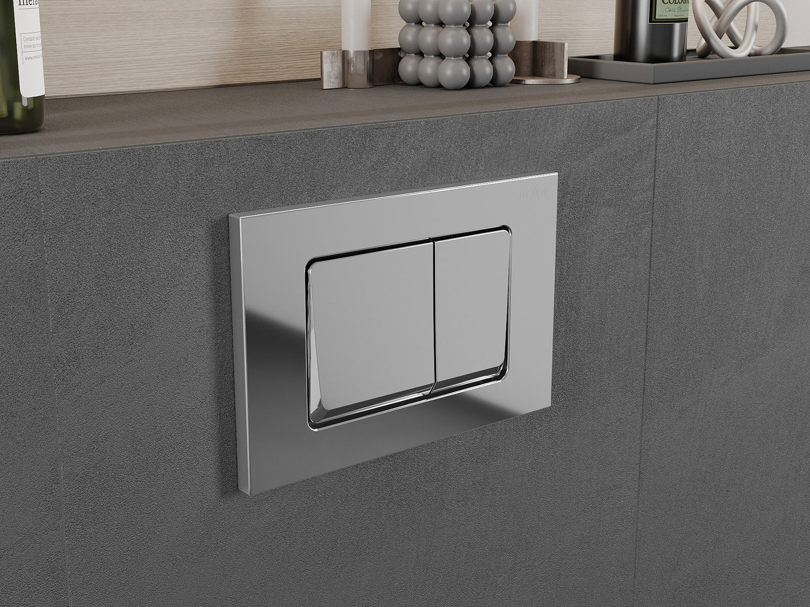 Le bouton est conçu pour les châssis Mexen de la série XS. Il peut être monté à la fois à l'avant et en haut du châssis, ce qui augmente son universalité. Cette solution facilite l'installation dans différentes conditions de montage. Ainsi, le contrôle de la chasse d'eau est pratique et intuitif.