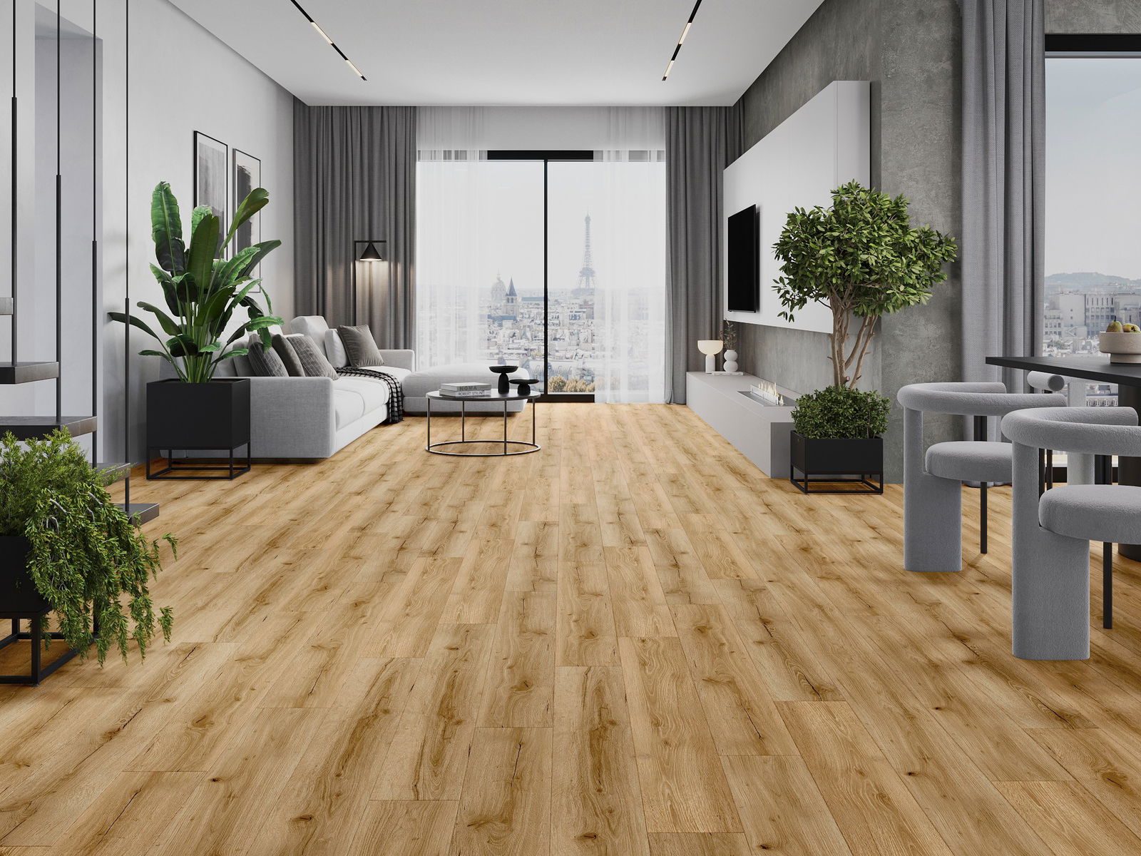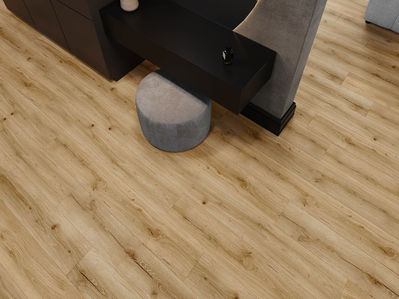 Les panneaux possèdent un joint à 4 côtés - chaque bord a été fraisé de telle manière que, une fois posé, il forme une connexion en forme de V. Ce design confère au sol une structure plus prononcée, lui donnant de la profondeur et un caractère esthétique. Cet effet est particulièrement apprécié dans les aménagements modernes, où les détails soulignent l'aspect unique de l'intérieur.