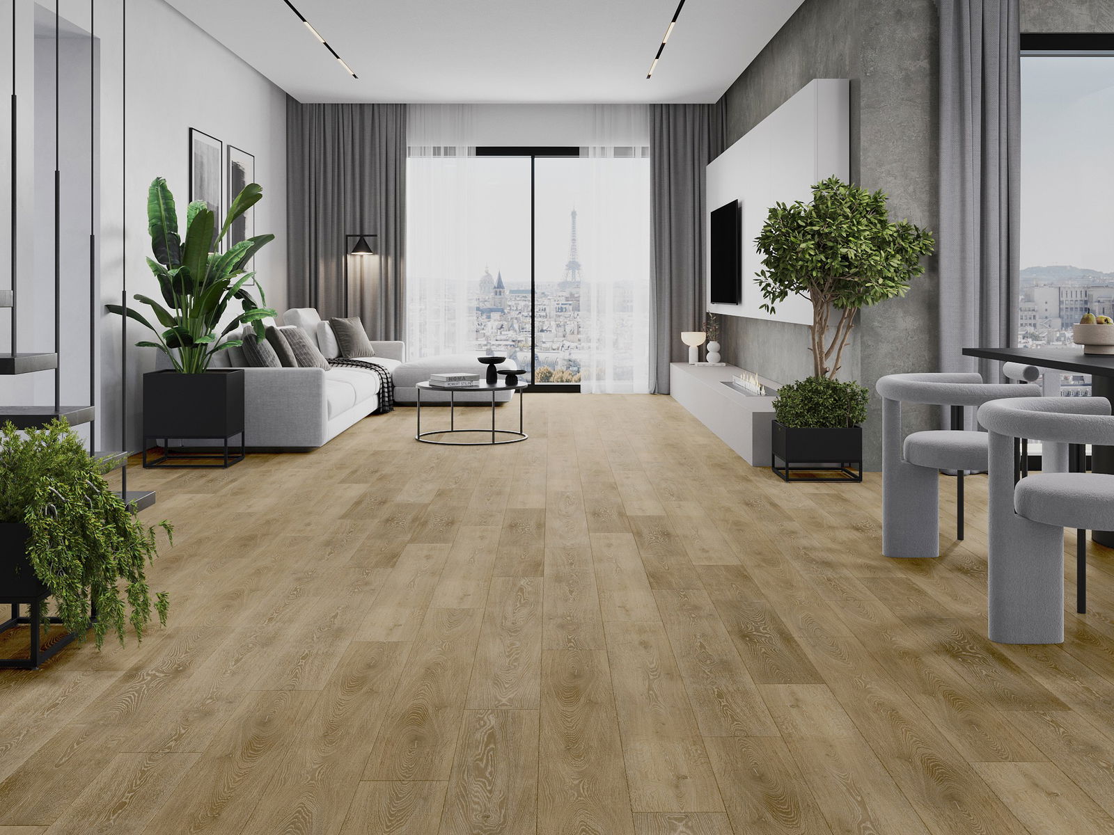 Mexen Alabama est un échantillon exceptionnel de panneaux vinyles de dimensions 1240 x 182 mm, épaisseur 6,5 mm, qui offre non seulement de l'esthétique mais aussi de la fonctionnalité. Grâce à l'utilisation d'une sous-couche intégrée IXPE de 1,5 mm d'épaisseur, l'installation est rapide et simple (Uniclick 2G). Le panneau est totalement imperméable et résistant aux dommages mécaniques et aux rayures. La classe d'utilisation 32 et la structure de chêne le rendent parfait pour tout intérieur, et le V-Fuga élégant à 4 côtés ajoute de l'élégance.