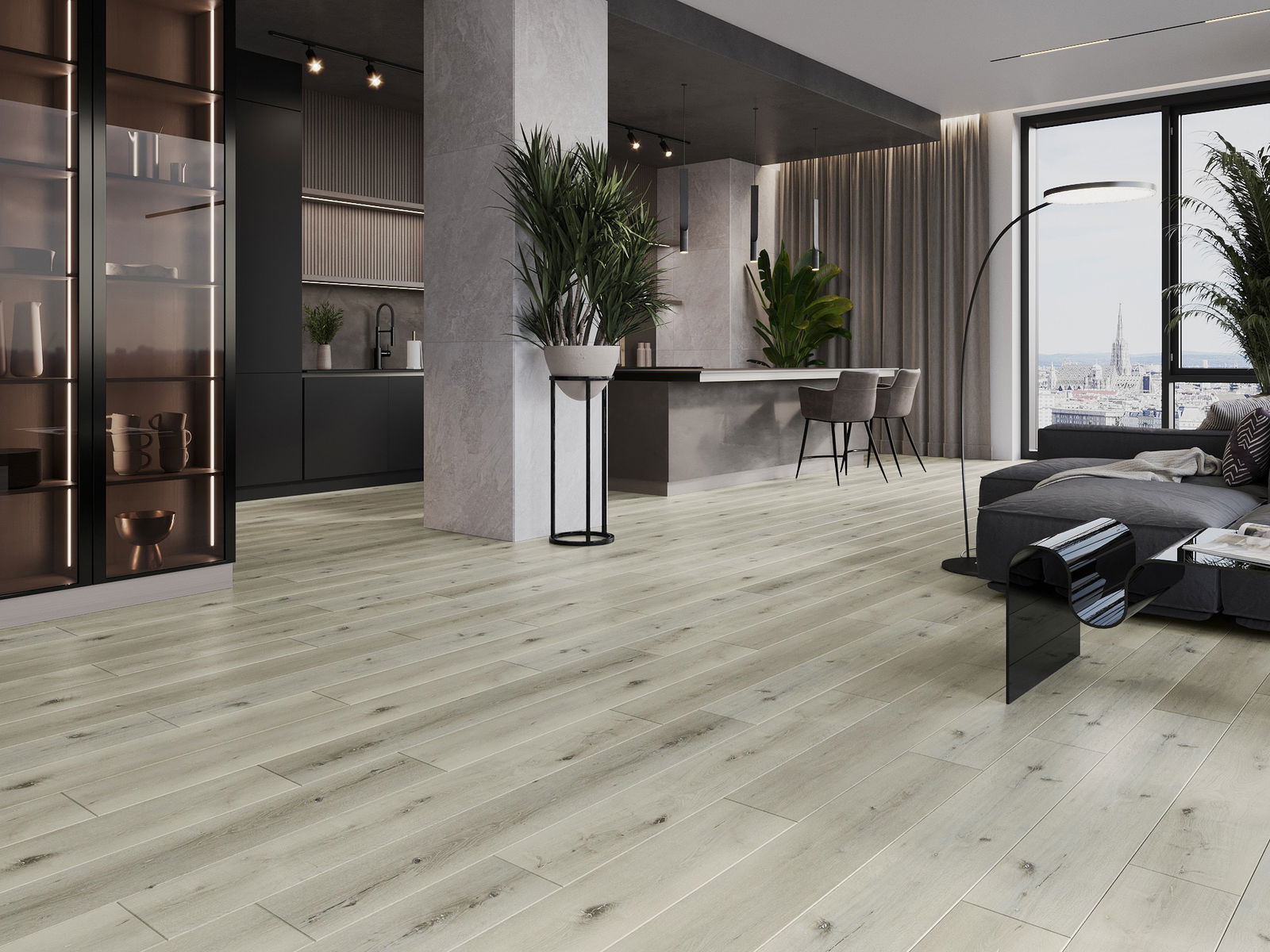 Mexen Silver Lake est un panneau vinyle innovant de dimensions 1240 x 182 mm et d'une épaisseur de 6,5 mm, offrant d'excellentes propriétés d'utilisation. Les panneaux se distinguent par une étanchéité à 100% et une haute résistance aux dommages mécaniques et aux rayures. La sous-couche intégrée IXPE de 1,5 mm augmente le confort d'utilisation. L'installation est simple grâce au système Uniclick 2G, et la classe d'antidérapage DS garantit la sécurité. Idéale pour le chauffage par le sol basse température.