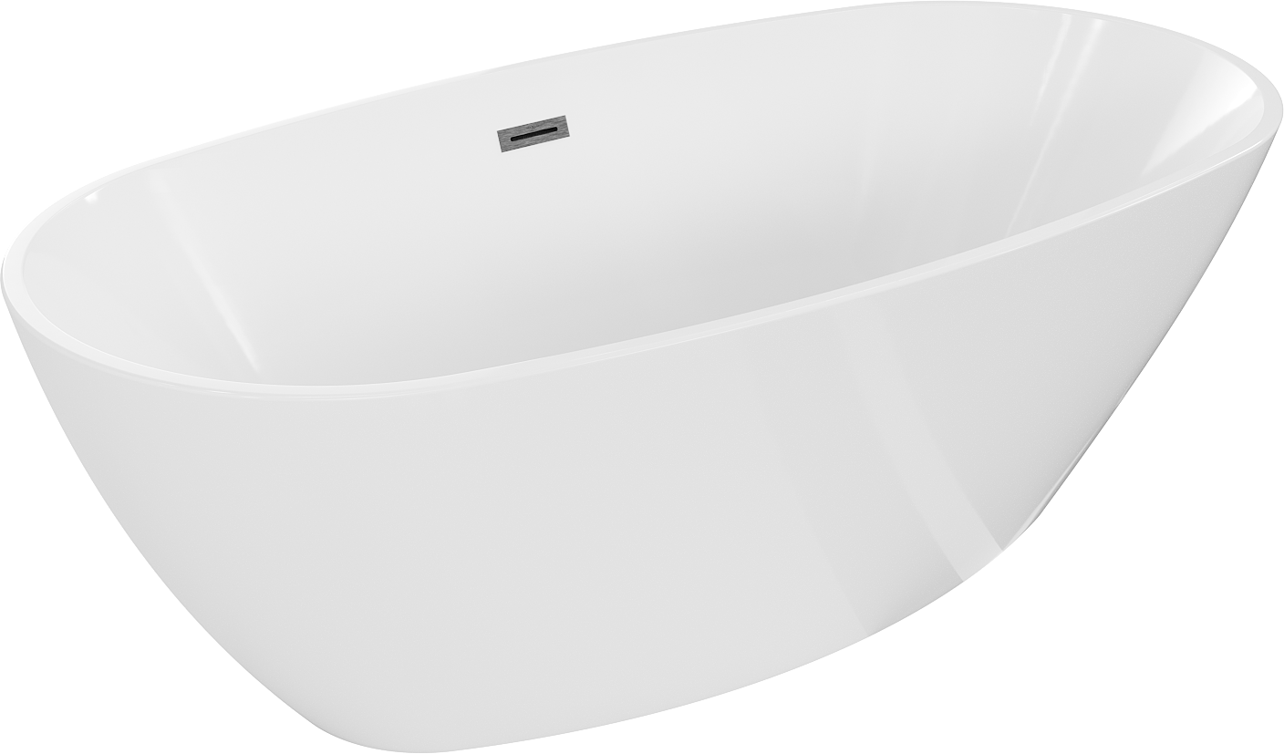 Mexen Eris baignoire autoportante 180 x 95 cm, blanche, trop-plein en gris acier brossé - 53441809500-66