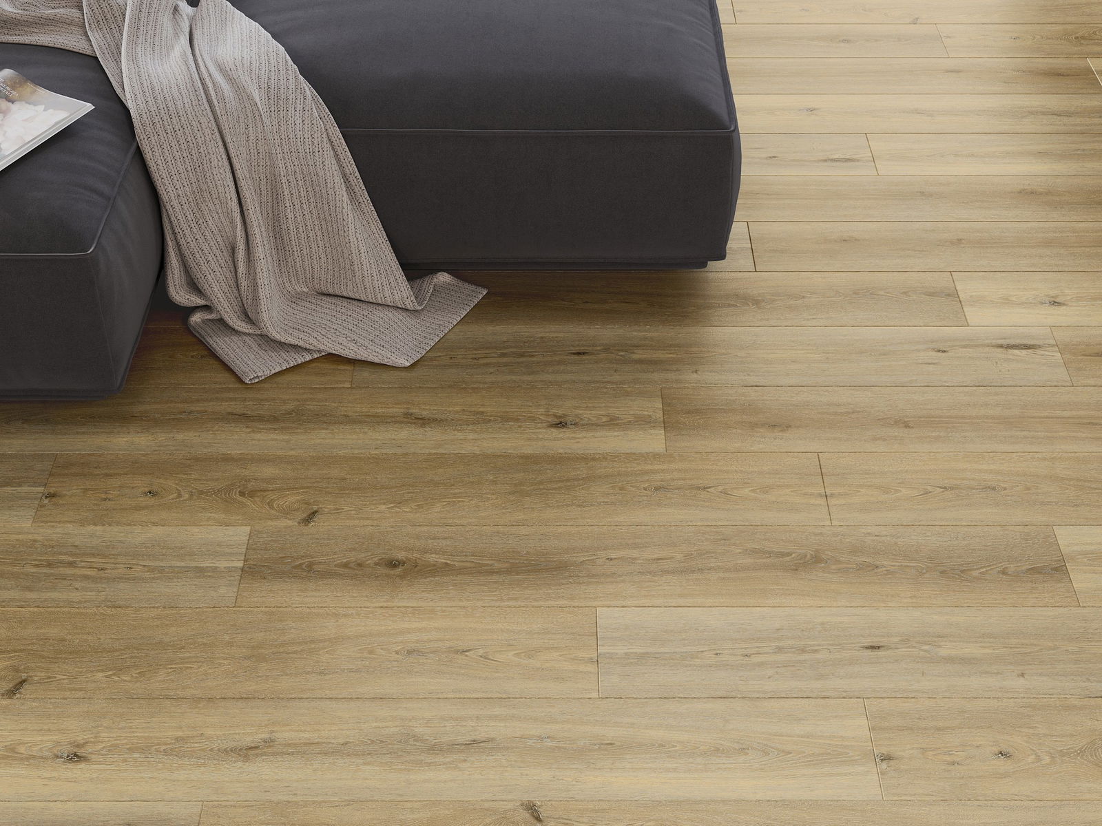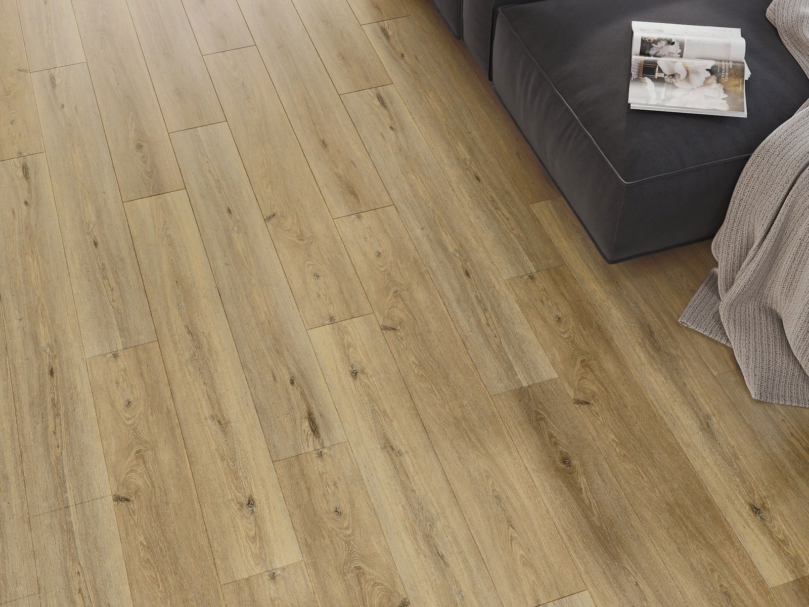 Les panneaux possèdent un joint à 4 côtés - chaque bord a été fraisé de telle manière que, une fois posé, il forme une connexion en forme de V. Ce design confère au sol une structure plus prononcée, lui donnant de la profondeur et un caractère esthétique. Cet effet est particulièrement apprécié dans les aménagements modernes, où les détails soulignent l'aspect unique de l'intérieur.