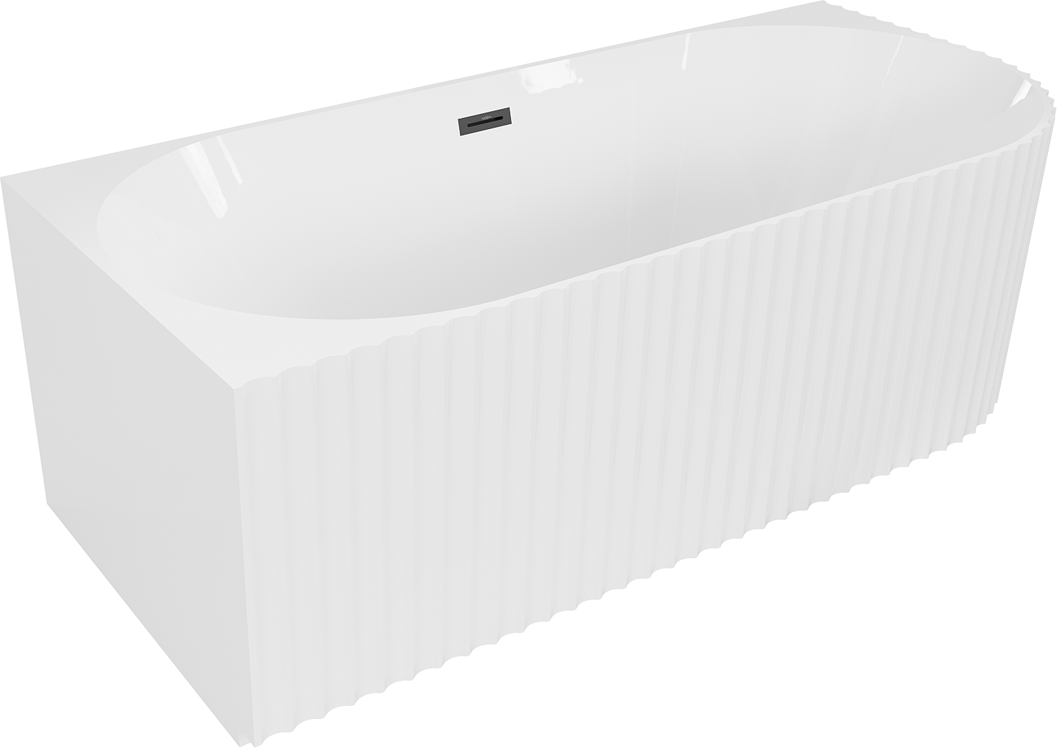 Mexen Gia baignoire autoportante d'angle cannelée gauche 150 x 75 cm, blanc brillant, trop-plein noir - 52701507500L-70