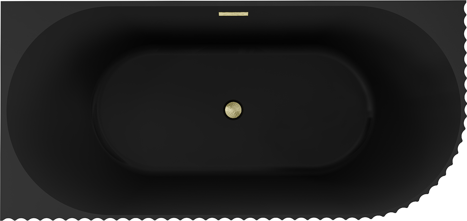 Mexen Gia baignoire autoportante d'angle rainurée gauche 150 x 75 cm, noir mat, trop-plein or brossé - 52701507571L-55