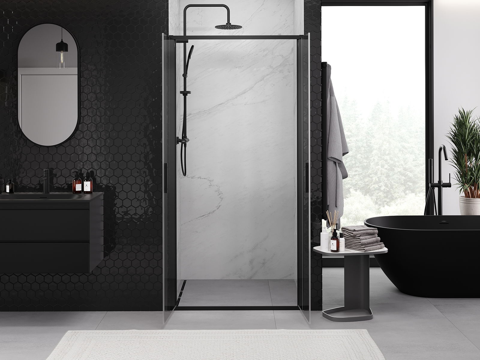Mexen Exo porte de douche double pivotante 90 cm, transparent, noir - 814-090-000-70-00