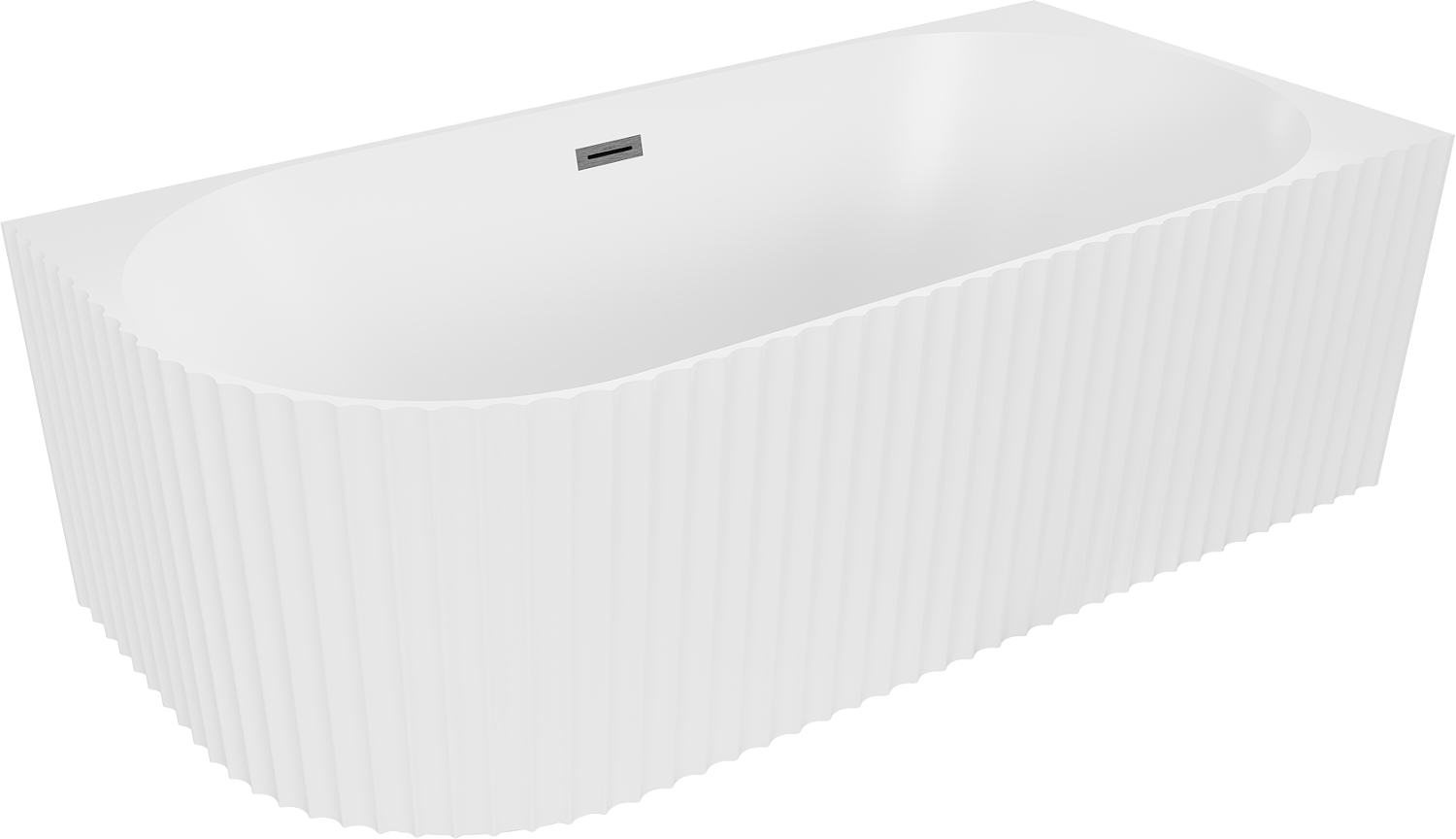 Mexen Gia baignoire autoportante d'angle cannelée droite 150 x 75 cm, blanc mat, trop-plein gris canon brossé