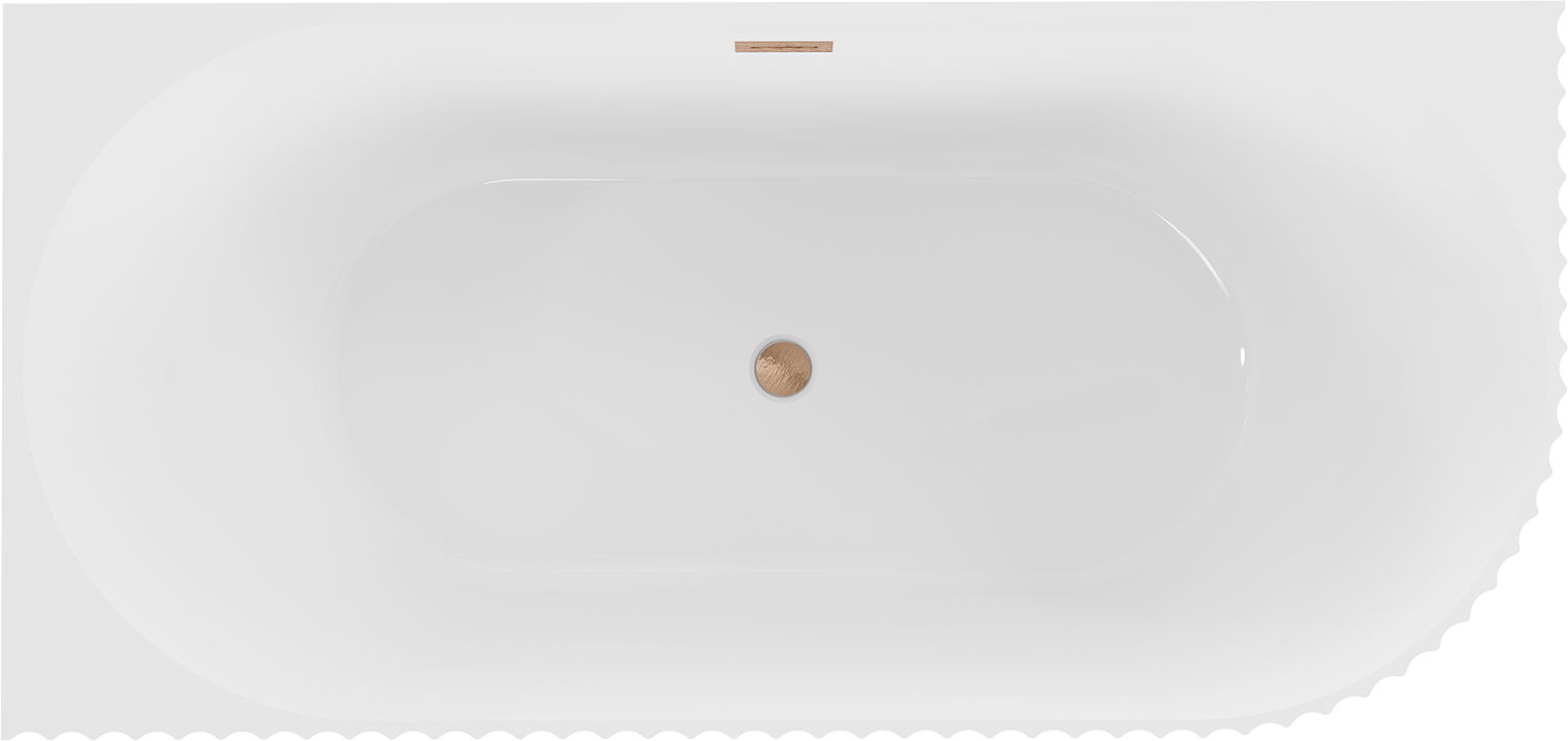 Mexen Gia baignoire autoportante d'angle rainurée droite 170 x 80 cm, blanc brillant, trop-plein cuivre brossé - 52701708000P-65