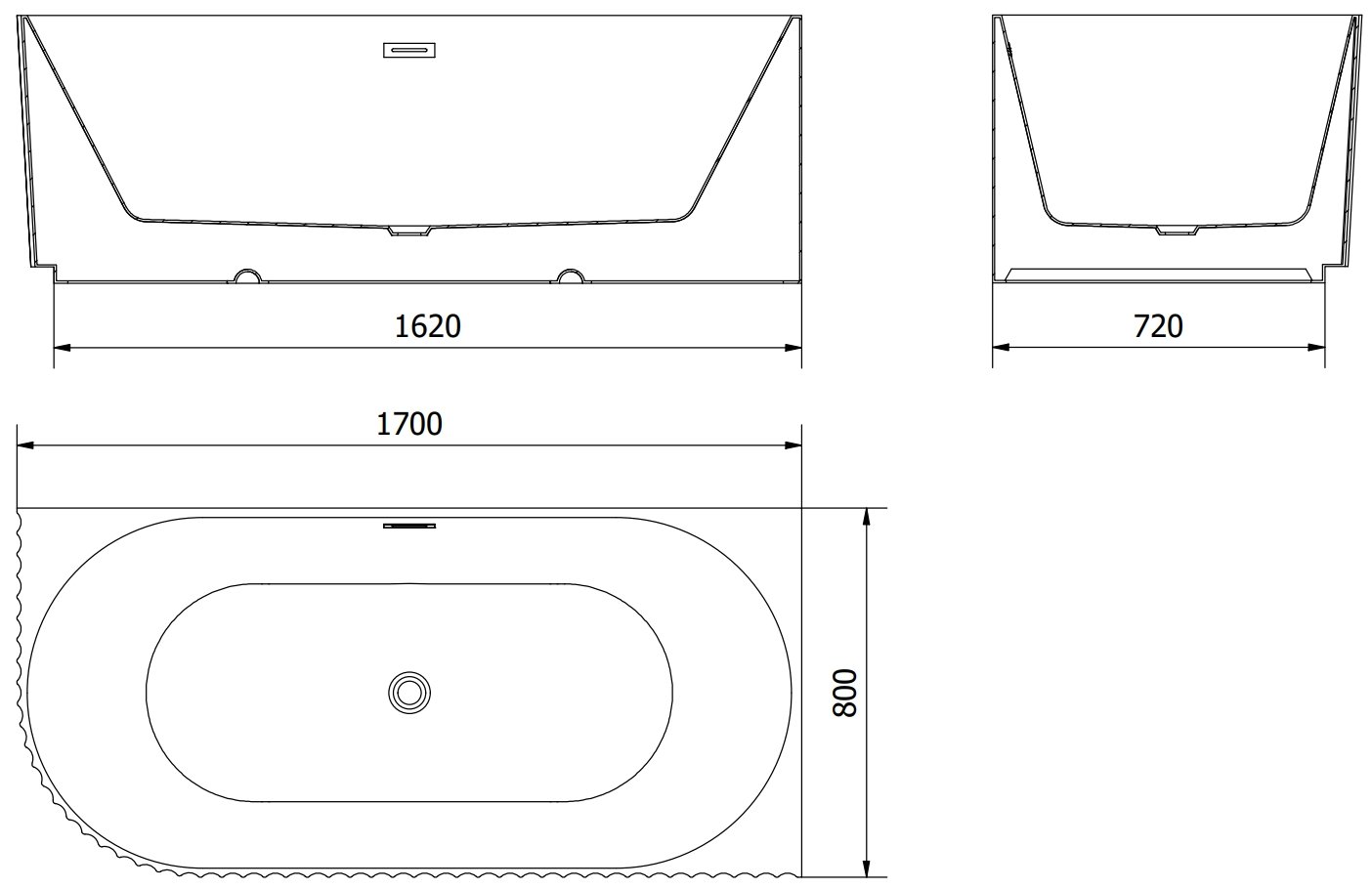 Mexen Gia baignoire autoportante d'angle droite rainurée 170 x 80 cm, blanc brillant, trop-plein noir - 52701708000P-70