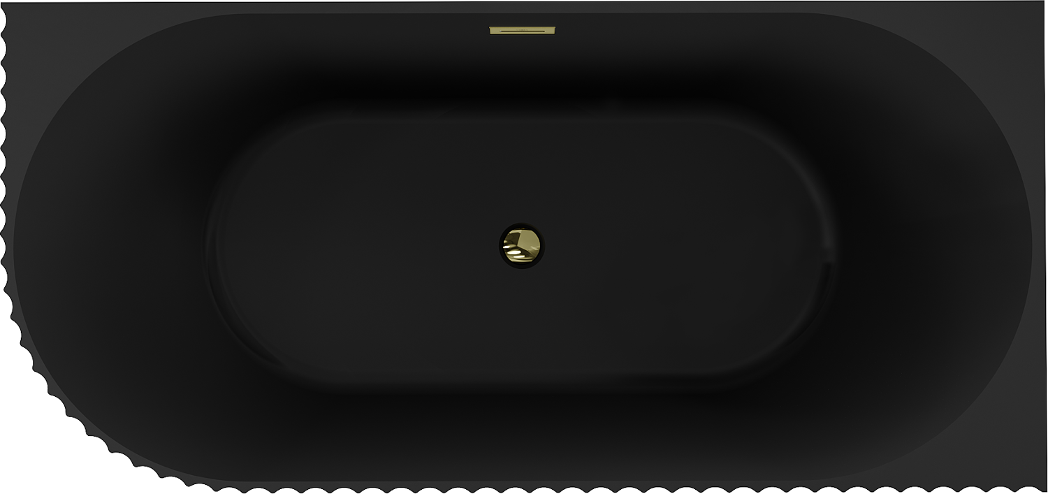 Mexen Gia baignoire îlot d'angle rainurée droite 170 x 80 cm, noir mat, trop-plein doré - 52701708071P-50