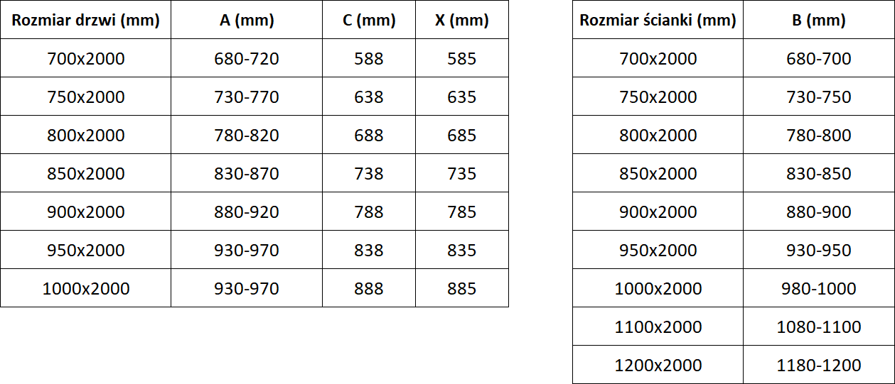 Taille : 90x80 cm (porte 90 cm, paroi 80 cm)