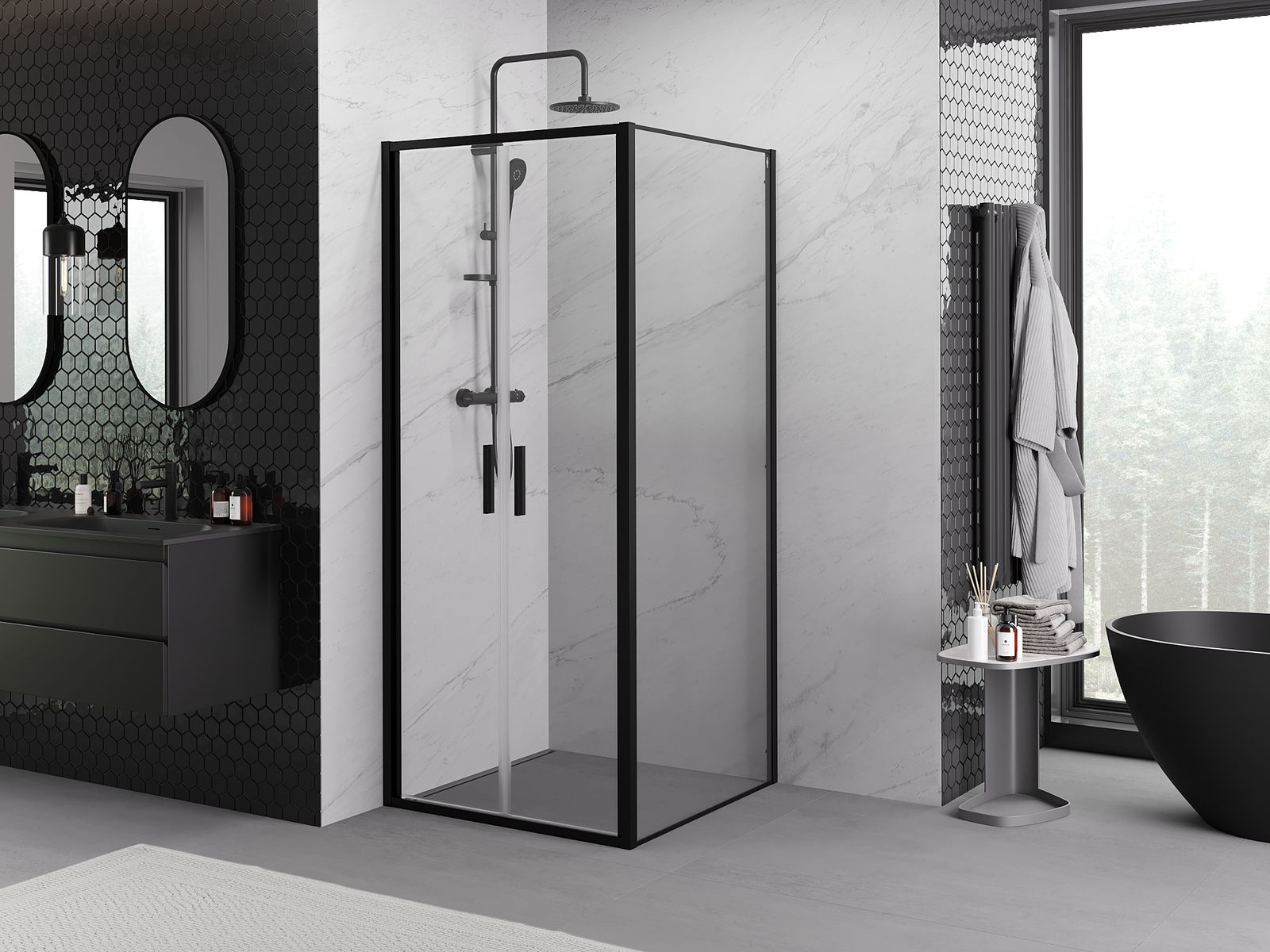 Mexen Exo cabine de douche pivotante 70 x 70 cm, transparente, noire - 814-070-070-70-00