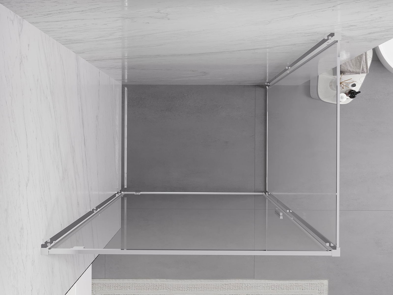 La poignée pratique et confortable est fabriquée en métal durable et résistant. Sa forme à la mode, combinée à une finition assortie à la couleur des profilés, donne à l'ensemble un aspect moderne et stylé, soulignant l'esthétique de chaque salle de bain.