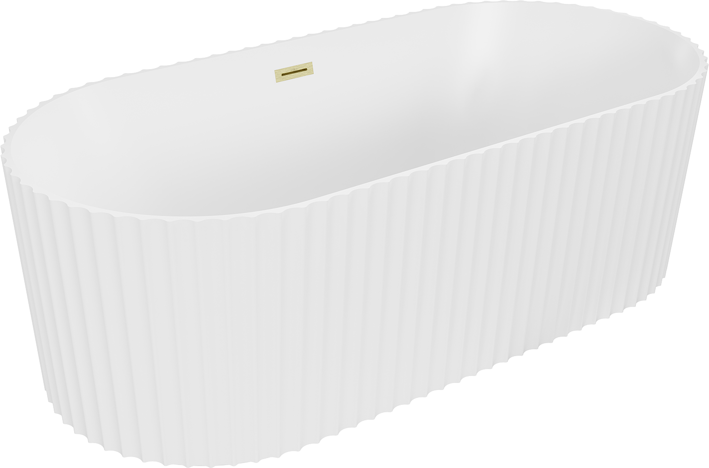 Mexen Paola baignoire autoportante rainurée 170 x 80 cm, blanc mat, trop-plein or brossé - 52721708001-55