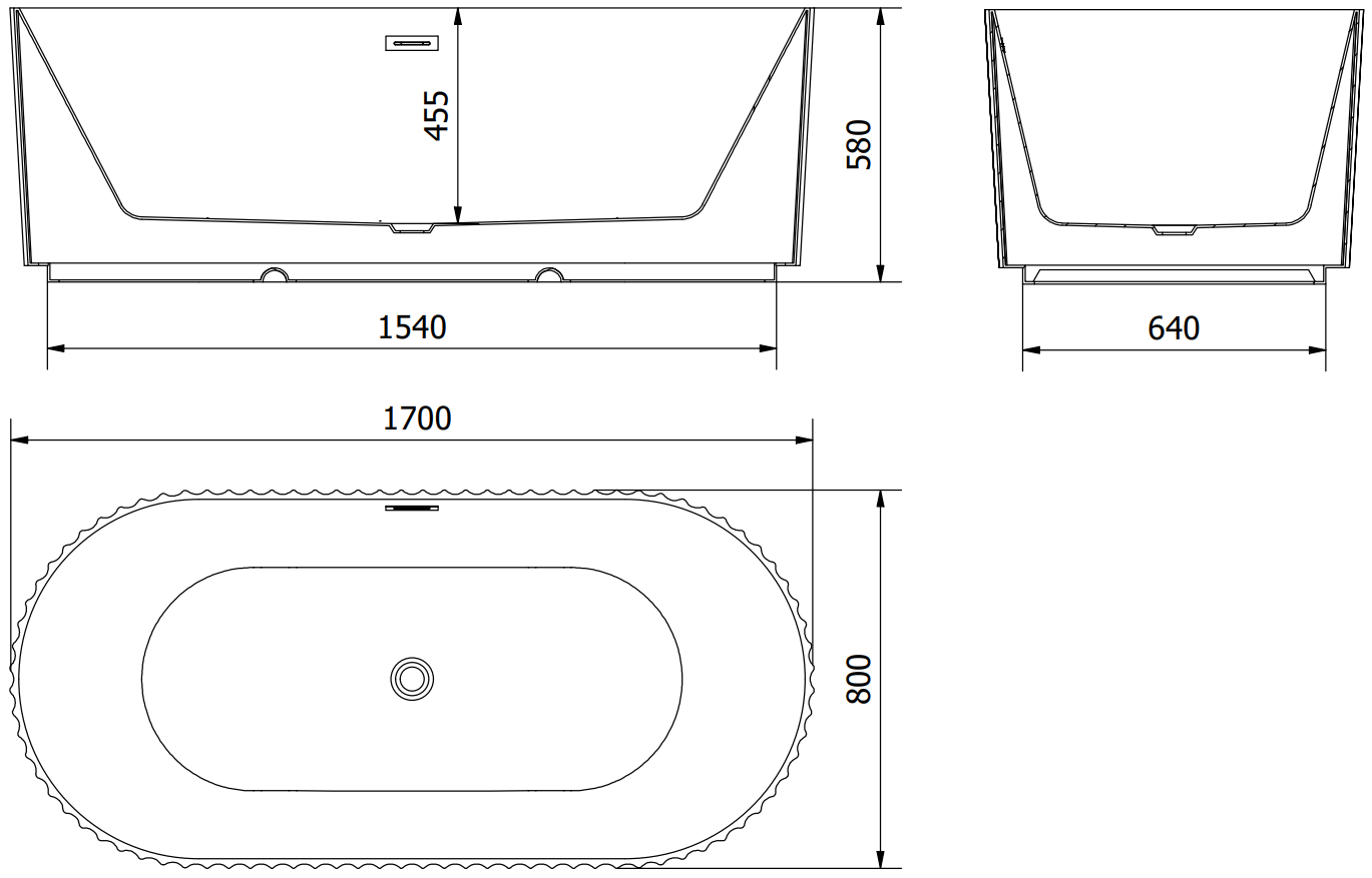 Mexen Paola baignoire autoportante rainurée 170 x 80 cm, noir mat, trop-plein gun metal - 52721708071-95