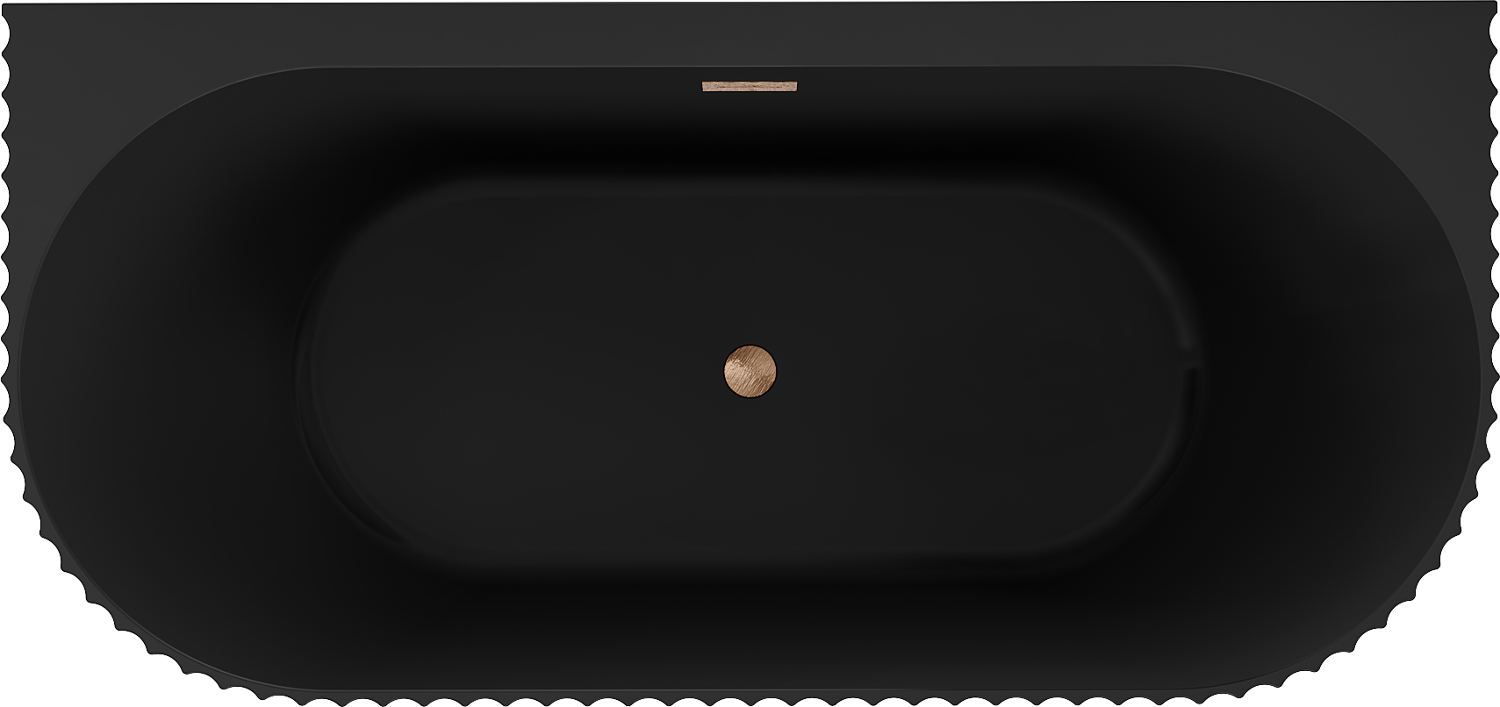 Mexen Sella baignoire autoportante adossée rainurée 170 x 80 cm, noir mat, trop-plein en cuivre brossé - 52711708071-65