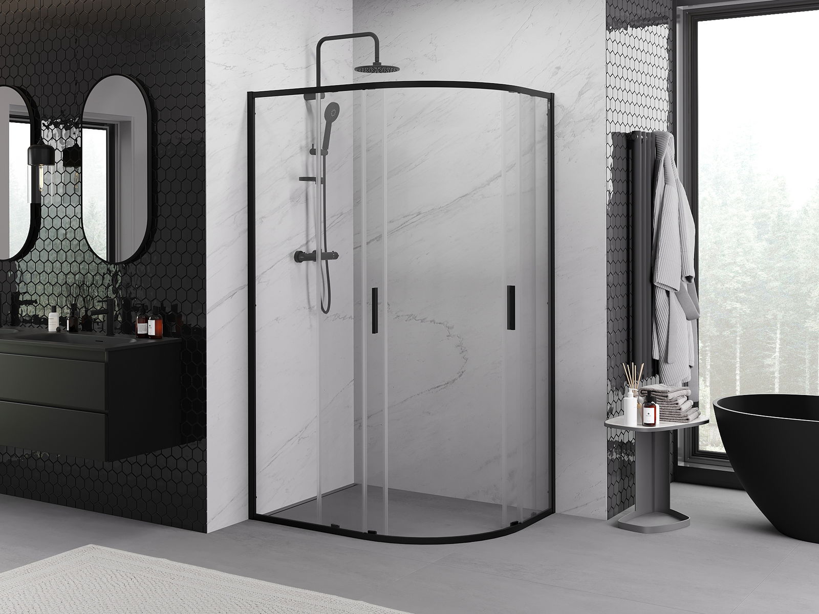Mexen Exo cabine de douche semi-circulaire asymétrique coulissante 100 x 90 cm, transparent, noir - 8132-100-090-70-00